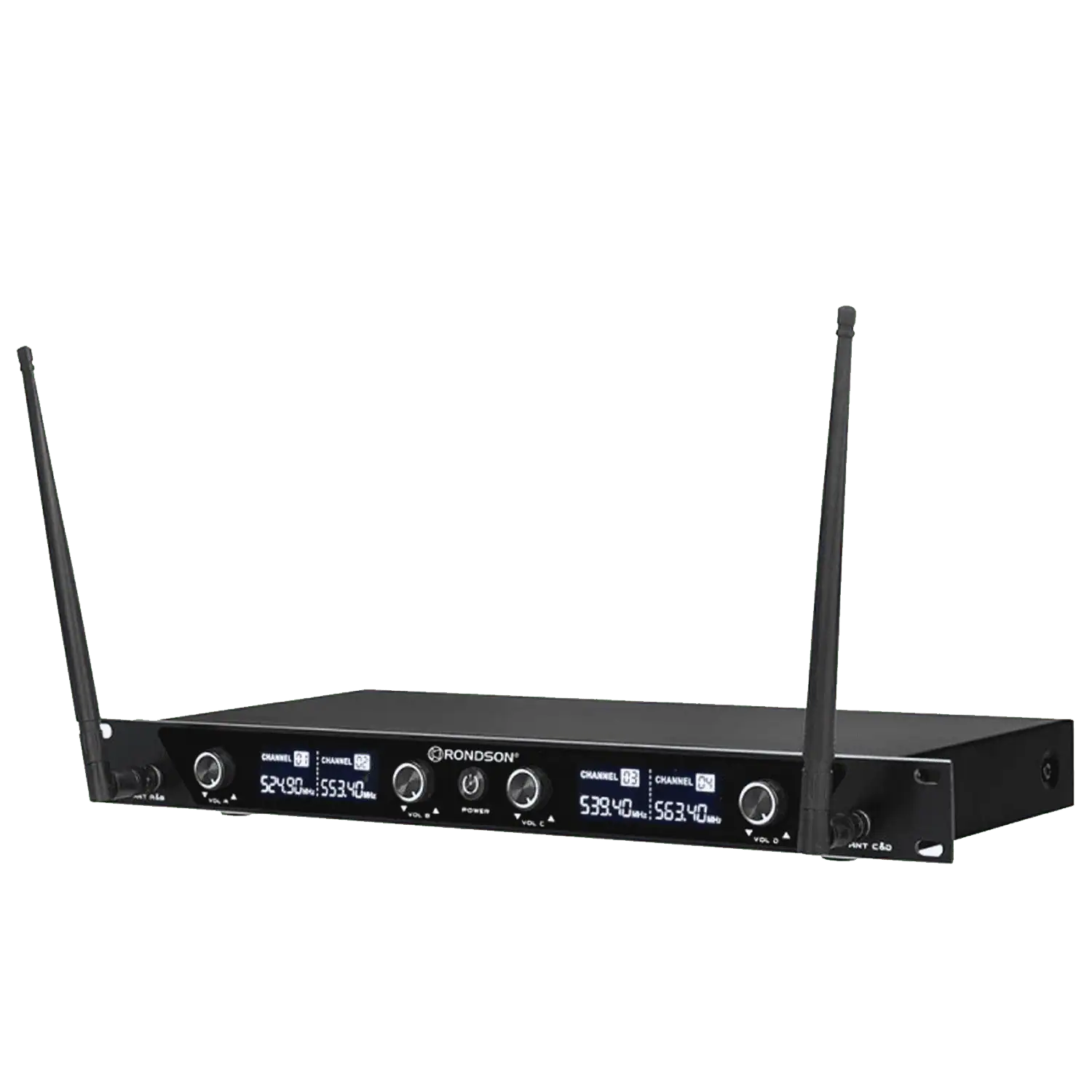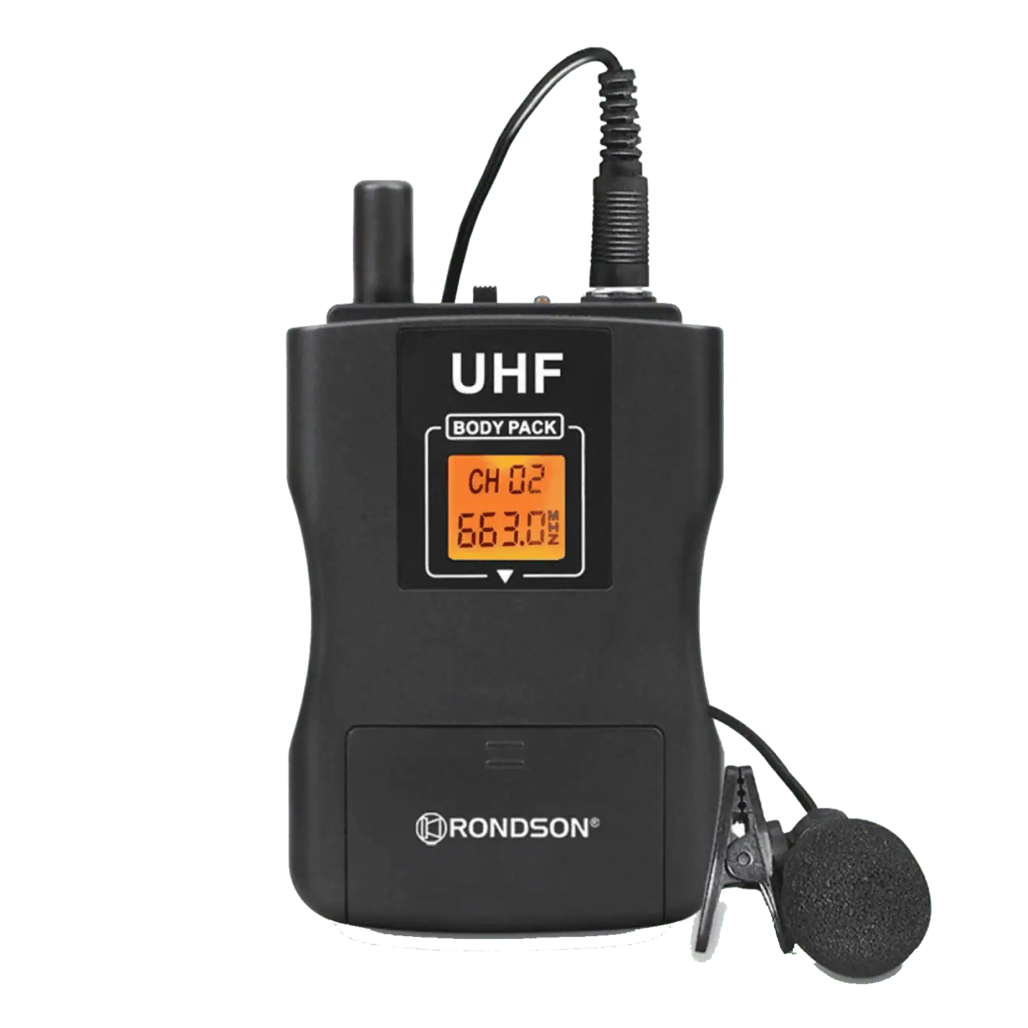 Il Rondson BE-1040/2MIC/2BP è un sistema microfonico wireless UHF composto da due trasmettitori a mano, due trasmettitori da tasca completi di microfoni lavalier e da un ricevitore a quattro canali montabile in una unità rack 19″. Compatto e di semplice utilizzo offre un’eccellente qualità dell’audio. Il ricevitore è dotato di moduli riceventi PLL sintetizzati selezionabili. Sono disponibili 8 bande di frequenza RF nel range 506-687.1 MHz. Il sistema di ricezione automatico è privo di interferenze, anche nelle configurazioni multicanale. Sincronizzazione tra trasmettitori e ricevitore tramite porta ad infrarossi. Il nitido display LCD permette la visualizzazione delle informazioni di funzionamento. E’ un sistema ideale per canto, presentazioni e strumenti musicali con apposito cavo.