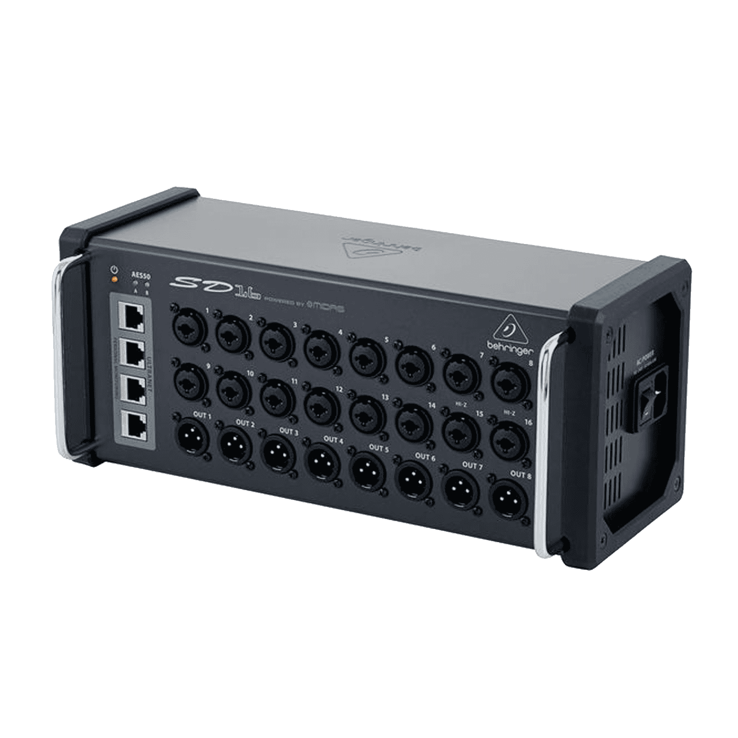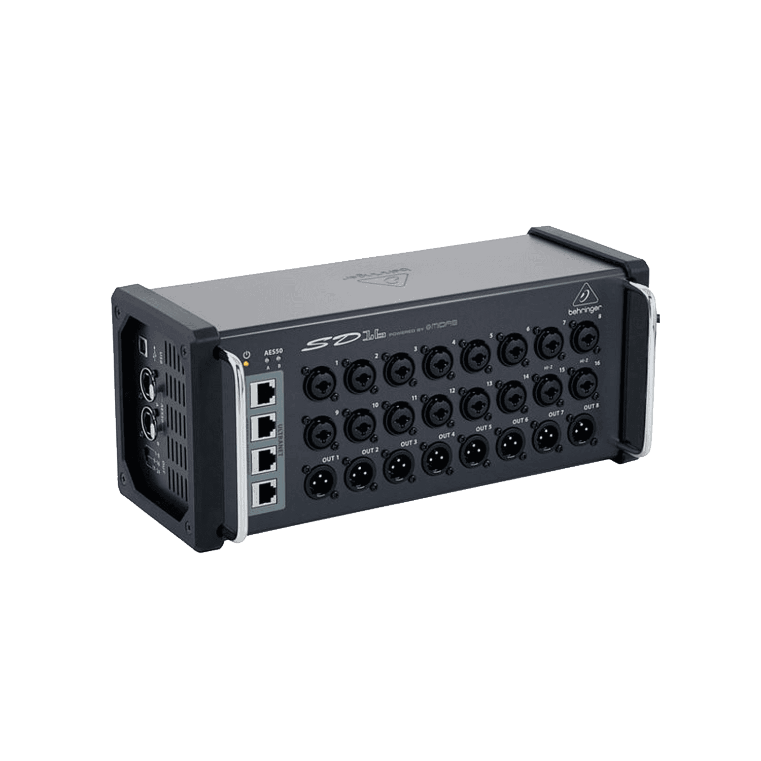 Il mixer SD16 fornisce 16 preamplificatori microfonici MIDAS controllabili da remoto, 8 XLR return analogiche bilanciate, oltre a un centro di distribuzione ultranet a 4 porte integrato per il collegamento diretto al mixer per personal monitor Behringer P16-M, senza bisogno di hardware aggiuntivo. Inoltre, il mixer è estremamente compatto e dotato di robuste protezioni, in modo da poterlo mettere direttamente sul palco, ovunque ce ne sia bisogno. Tutto quello che serve è un singolo cavo Cat 5e per stage box. E se hai bisogno di più ingressi, o semplicemente vuoi mantenere corti e ordinati i cavi, mettendo un SD16 nella parte anteriore del palco ed un altro dietro il batterista, avrai ulteriori 16 ingressi per il microfonaggio della batteria e degli amplificatori per chitarra o basso.