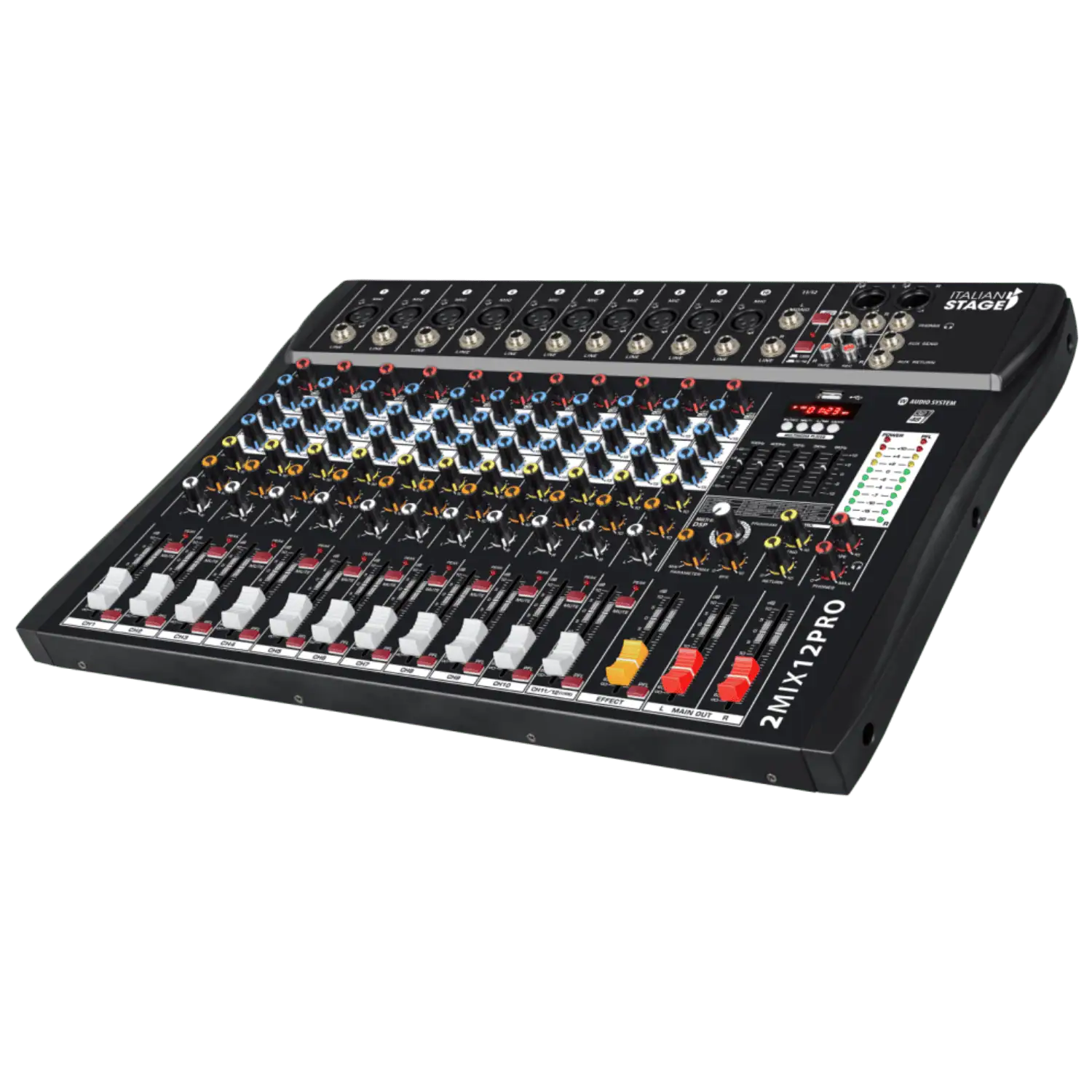 La nuova 2MIX di Italian Stage è una serie di mixer di piccolo formato che offrono tutto ciò di cui il musicista o il semplice appassionato necessitano, oltre ad un suono nitido e potente grazie all’utilizzo di preamplificatori a basso rumore. Dotato di un set di funzioni completo, la serie offre lo streaming audio Bluetooth, oltre alla registrazione e alla riproduzione USB. Dotata di un nuovo processore multieffetto DSP digitale, il mixer funziona anche come interfaccia audio USB 2+2 canali per registrazione o riproduzione DAW. I modelli da 4, 6, 8 e 12 canali comprendono anche audio USB con un registratore e lettore integrato in grado di registrare file MP3 direttamente su unità flash USB. E’ possibile riprodurre file MP3 per basi musicali da accompagnamento, o musica di sottofondo durante le pause dei trattenimenti dal vivo.