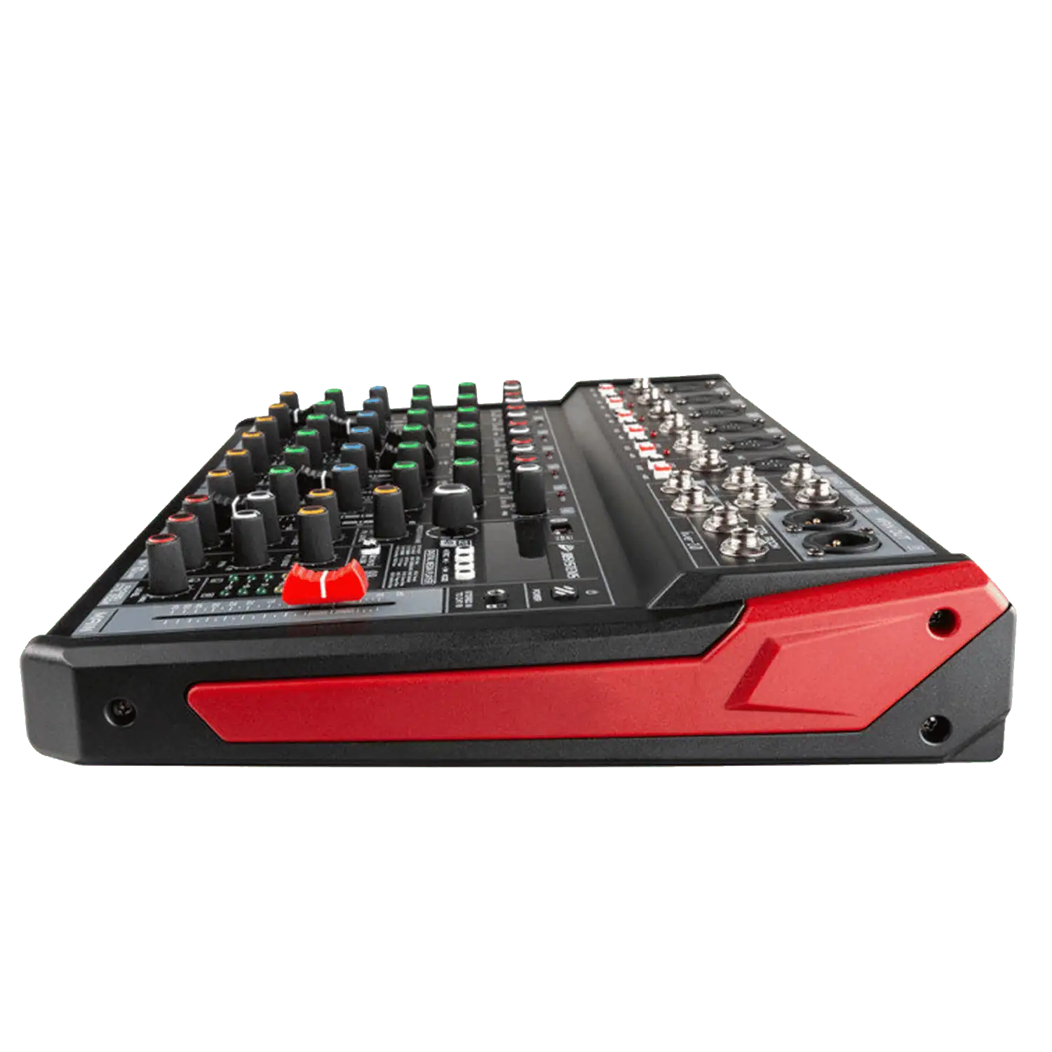 Mixer compatto a 10 ingressi e 8 canali, alimentato tramite connettore USB a 5 V per la massima versatilità d’utilizzo. Consente di ottenere il 100% della mobilità se combinato con un power bank esterno e e diffusori attivi alimentati a batteria. Connettore USB bidirezionale sul pannello superiore, sia per la registrazione mono o la riproduzione stereo tramite PC/Mac, ricevitore bluetooth integrato. Lettore multimediale interno WMA, WAV, FLAC, APE e MP3 per la riproduzione di file su memory stick USB, il lettore multimediale può essere utilizzato anche come registratore MP3 mono (a 128 kbps), unità interna DSP a 32 bit con 99 effetti. Controllo degli ingressi su tutti i canali mono: interruttore di alimentazione Phantom a 48 V individuale su ogni canale, interruttore PAD -20 dB, guadagno, panpot, interruttore filtro low cut (passa-alto), regolatore toni acuti, bassi e medi semi-parametrici, mandata effetto, fader per la regolazione del livello del canale.