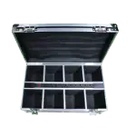 Baule flight case rigido per il trasporto di 8 faretti smart bat senza ulteriori problemi di spostamento! Aprendo il baule avremo 8 spazi dove poter mettere al sicuro i faretti a batteria. Il baule è resistente con bordi in alluminio, maniglie laterali e chiusure a farfalla. Faretti acquistabili direttamente da qui.