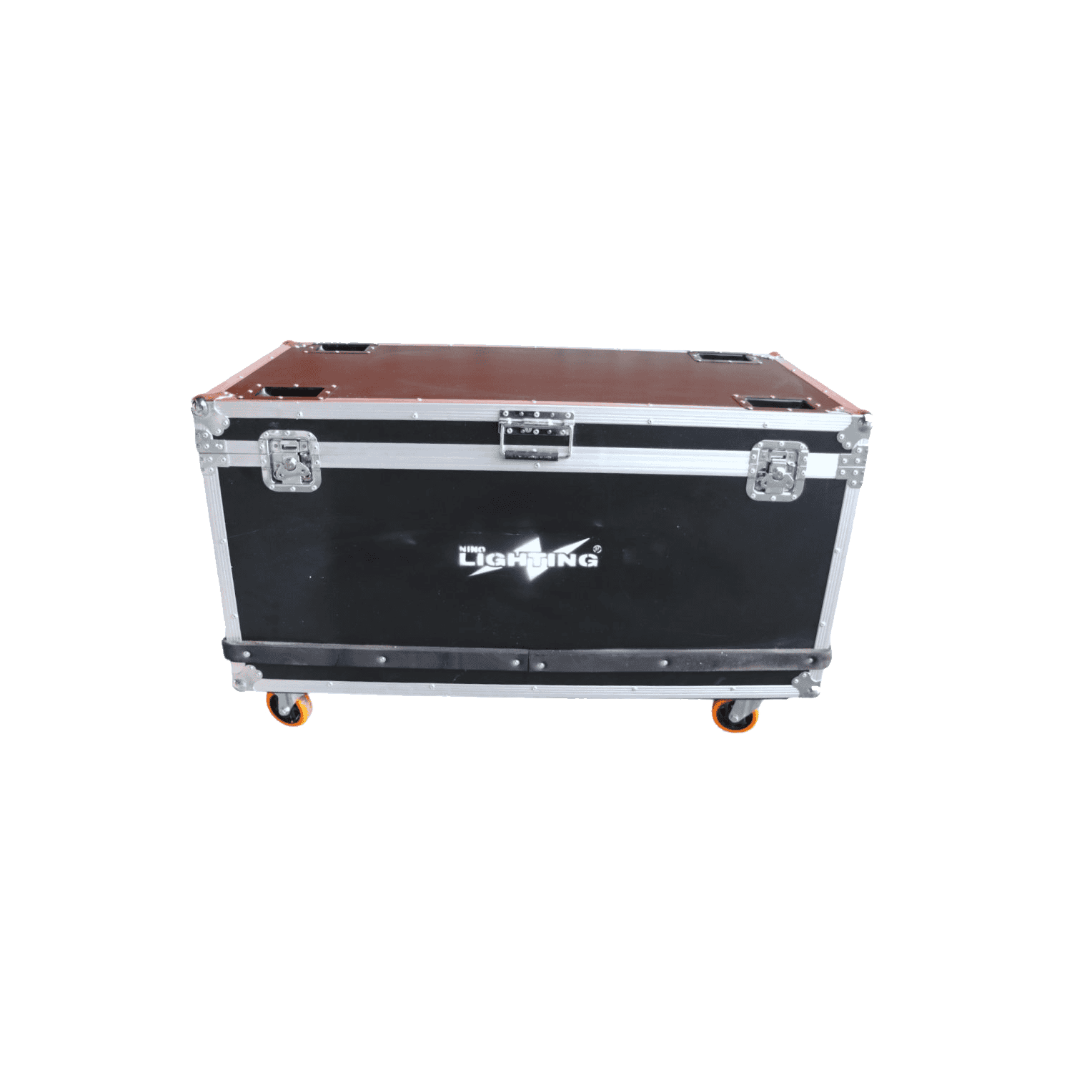Baule Flight case vuoto rigido e resistente ideale per il trasporto di 10 Pannelli LED WALL. Aprendo il baule avremo un ampio spazio per il trasporto e protezione per lo spostamento. Il baule è realizzato con materiale resistente con bordi e rifiniture in alluminio, con maniglie laterali, con ruote con leva freno per il blocco baule ed apertura e chiusura a farfalla.