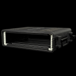 Il case è dotato di guide rack filettate anteriori e posteriori, compatibili con tutti i dispositivi standard da 19 pollici, consentendo un’installazione rapida senza necessità di dadi a gabbia. La profondità da 12” (circa 30 cm) lo rende particolarmente adatto a configurazioni compatte, perfette per regie mobili, piccoli rack di controllo o sistemi portatili.