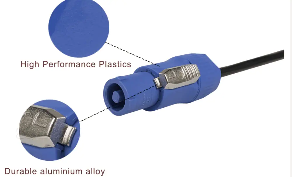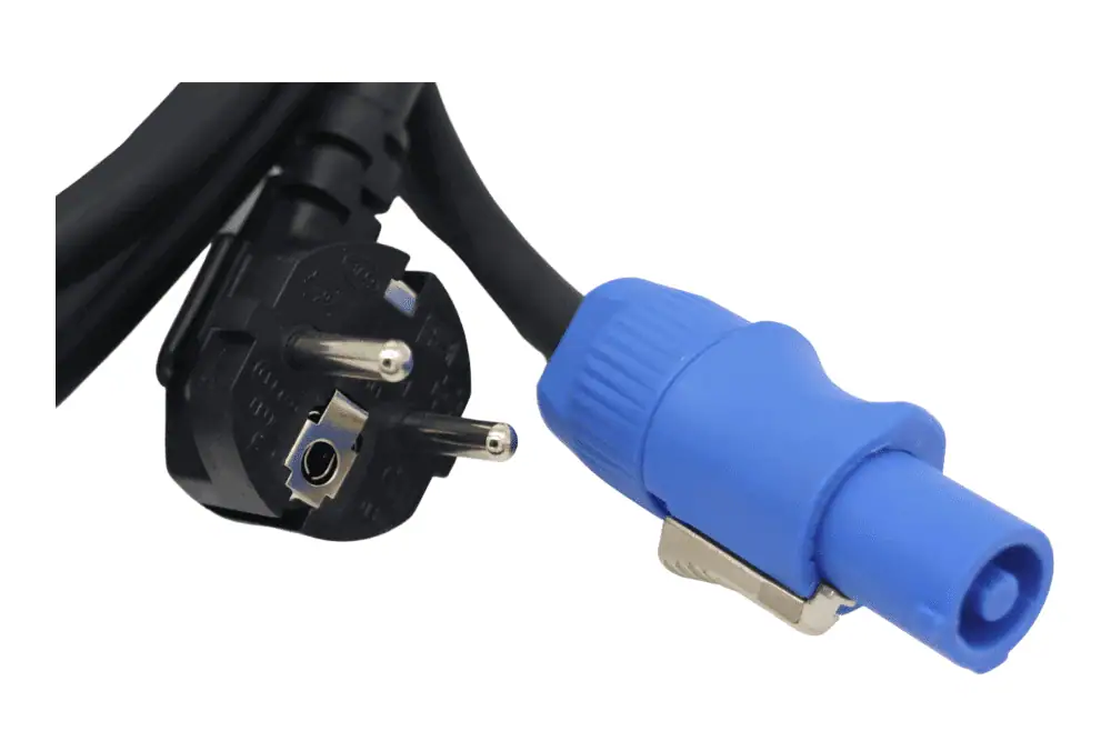 - Tipo di estremità: powercon blu (connettore di ingresso alimentazione) e presa schuko Italiana
