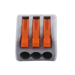Connettore universale a 3 poli 1 via per cavi, ideale per connettere cavi in scatola in totale sicurezza e praticità. Dotato di foro per test nella parte superiore.
