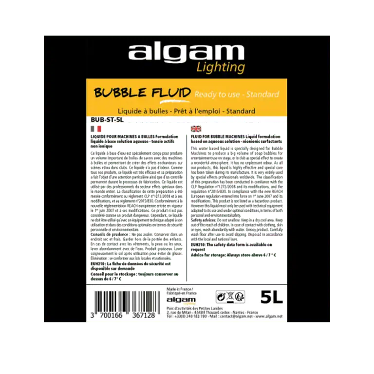 Liquido Algam Lighting BUB-ST-5L Standard per ricarica Macchine delle Bolle