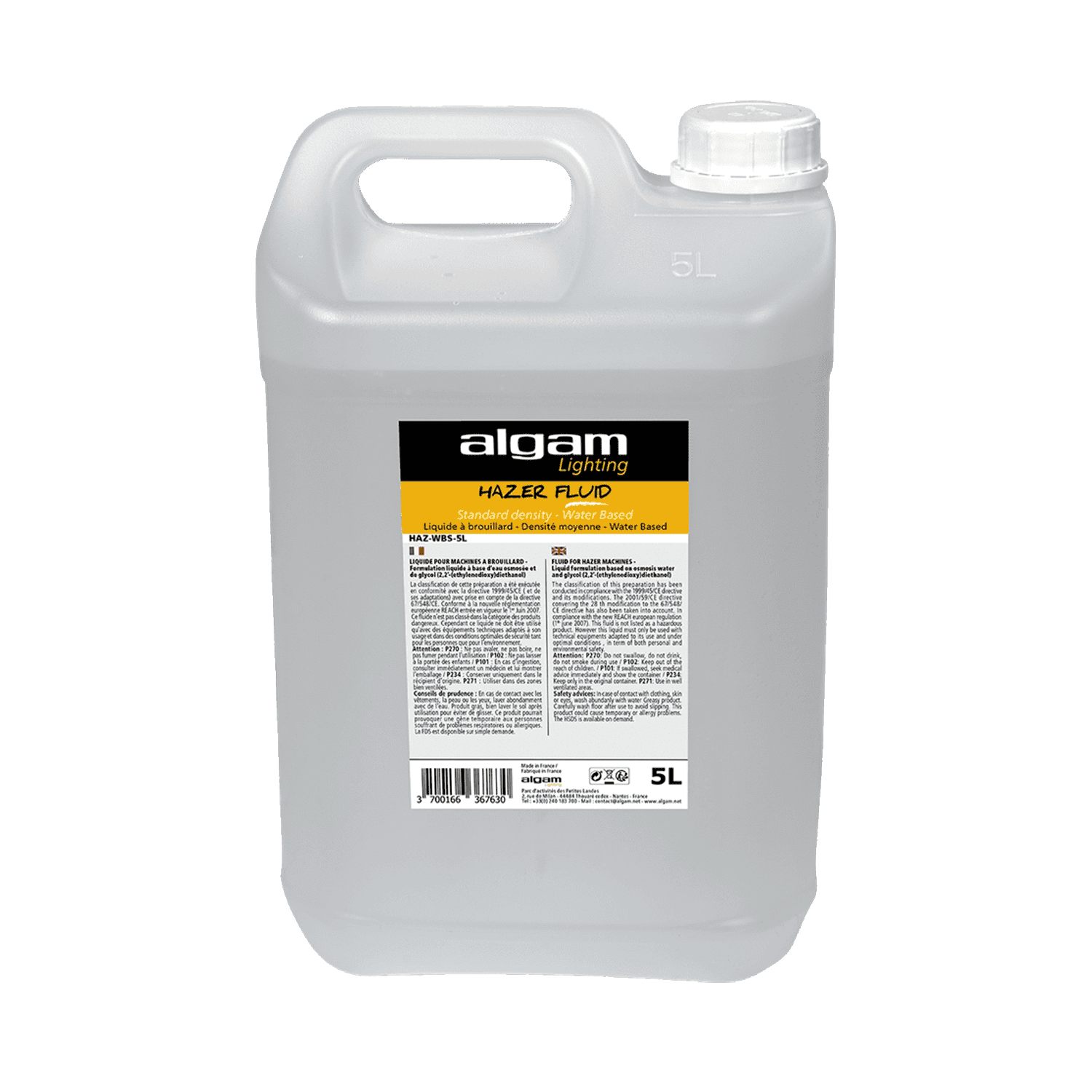 L’ Algam Lighting HAZ-WBS è il liquido hazer a base d’acqua per effetto foschia che ha la particolarità di fornire un velo omogeneo e relativamente stretto che rimarrà più stabile del fumo convenzionale.