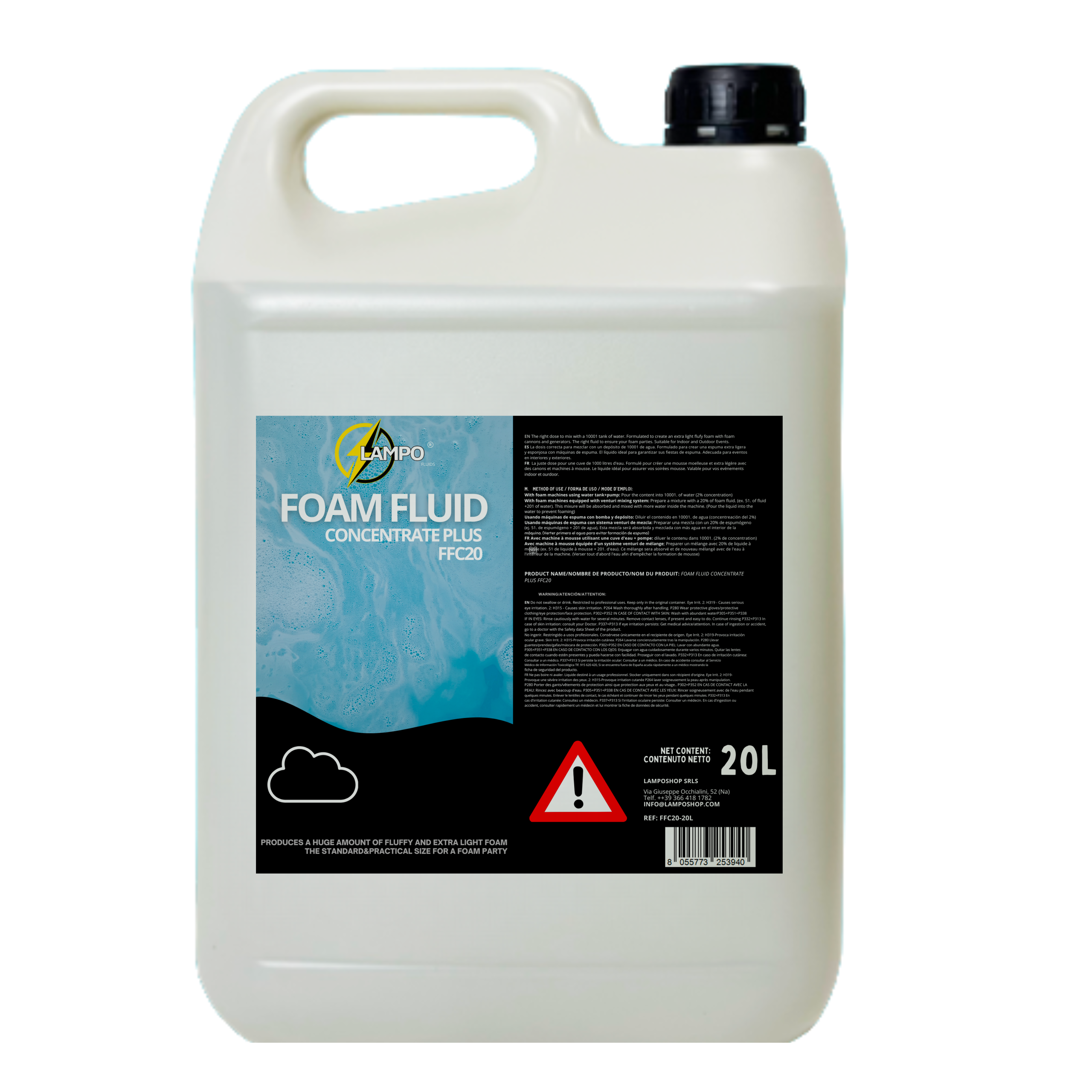 Liquido Concentrato Lampo Fluids Foam 20L per Macchine della Schiuma | Formula Professionale al 2% per Cannoni e Generatori | Schiuma Extra-Leggera, Sicura e Biodegradabile | Ideale per Eventi, Party e Spettacoli | Alta Resa con Miscelazione Venturi o Serbatoio