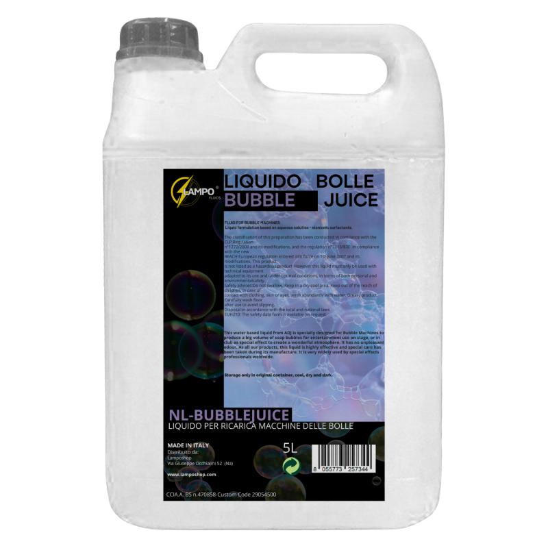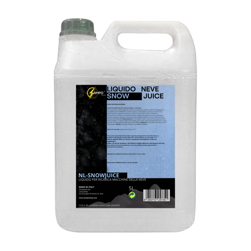 Uno dei principali vantaggi del liquido Lampo Fluids è la sua composizione ecologica: è completamente biodegradabile, inodore e non tossico, garantendo la massima sicurezza per operatori, artisti e pubblico. Inoltre, non lascia residui sulle superfici e non provoca blocchi o malfunzionamenti alle macchine del fumo, grazie all’assenza di componenti dannosi o corrosivi. Questo significa meno manutenzione, maggiore affidabilità e una lunga durata delle attrezzature.