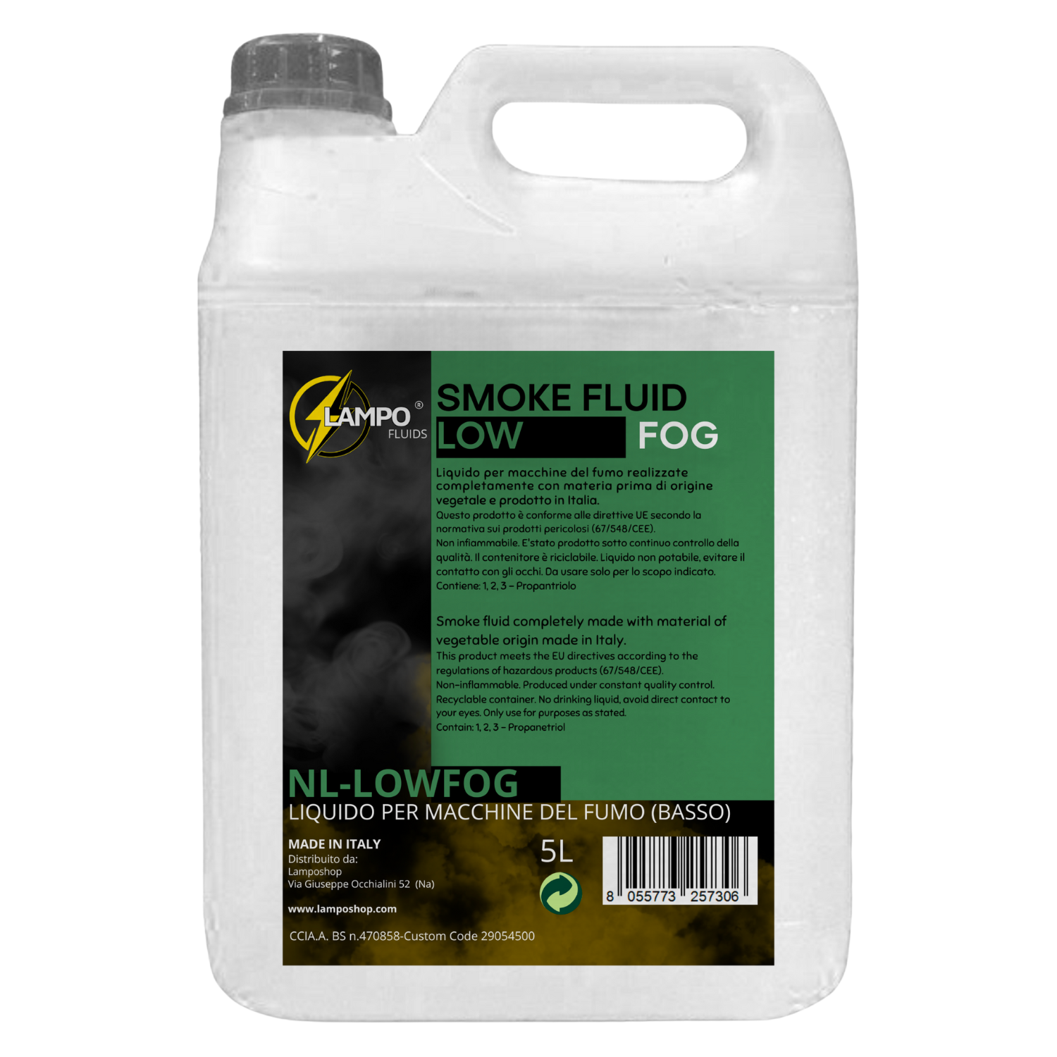 Liquido Lampo Fluids Low Fog-5L per Macchine del Fumo Basso | Nebbia Compatta, Persistente e Biodegradabile | Ricarica Professionale da 5 Litri per Effetti Scenici a Pavimento | Inodore, Non Tossico, Pronto all’Uso | Alta Stabilità e Lenta Dissipazione
