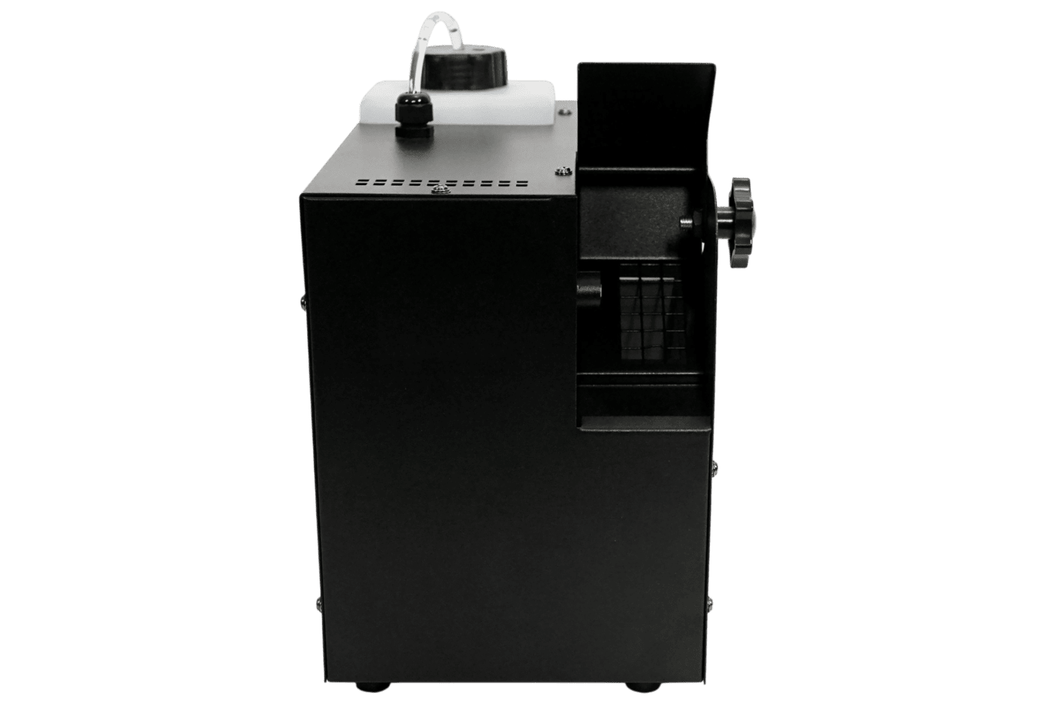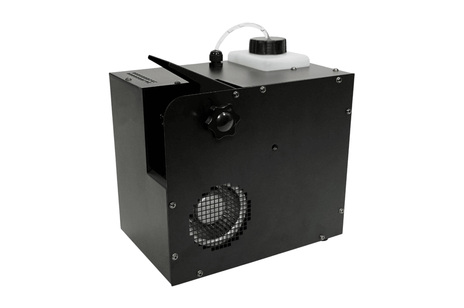 Dotata di una ventola interna estremamente efficiente, è in grado di erogare circa 76 metri cubi al minuto, garantendo un riempimento rapido e controllato. Grazie al particolare sistema di nebulizzazione, la macchina non produce nuvole dense come un normale smoke machine, ma genera una foschia sottile che risalta perfettamente giochi di luce, laser, fasci LED e scenografie luminose.
