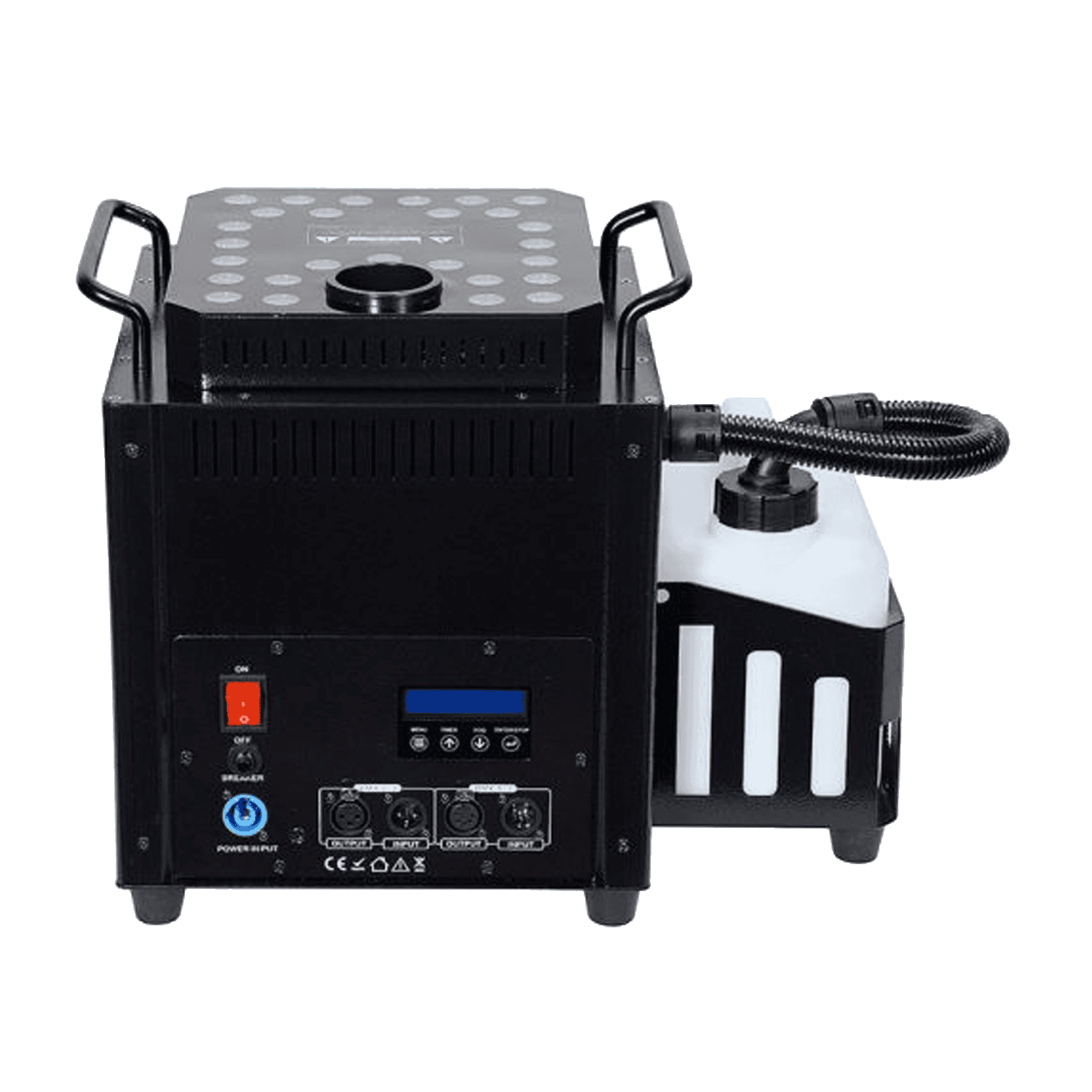 La PFX3500 JET è una macchina del fumo verticale con doppio output e dotata di 27 LED RGBW da 9 Watt. Dotata dell’esclusiva tecnologia super-jet, la cui velocità e potenza di uscita possono essere paragonate a quelle di un cannone CO2. Grazie all’integrazione dei LED, l’effetto visivo è davvero d’impatto. La macchina è possibile anche posizionarla sottosopra.