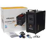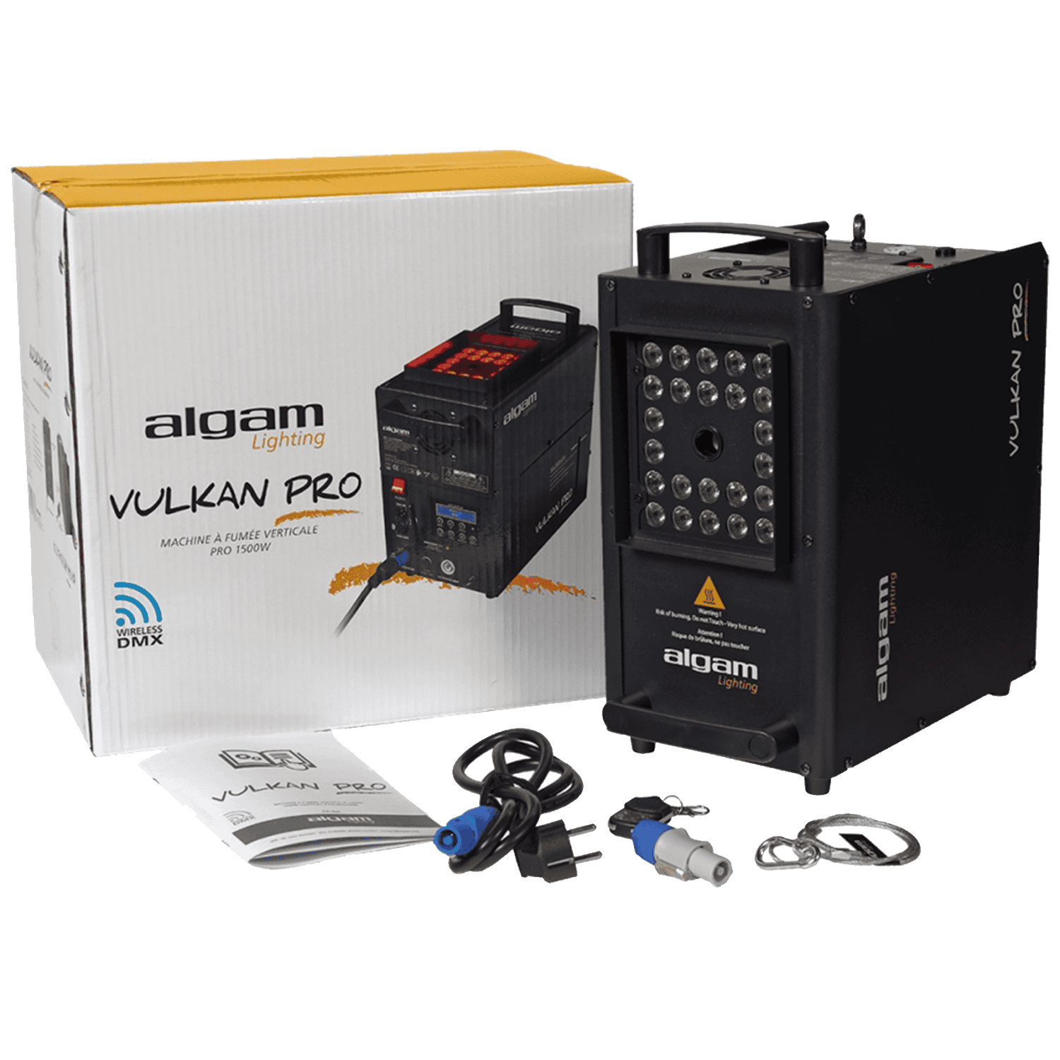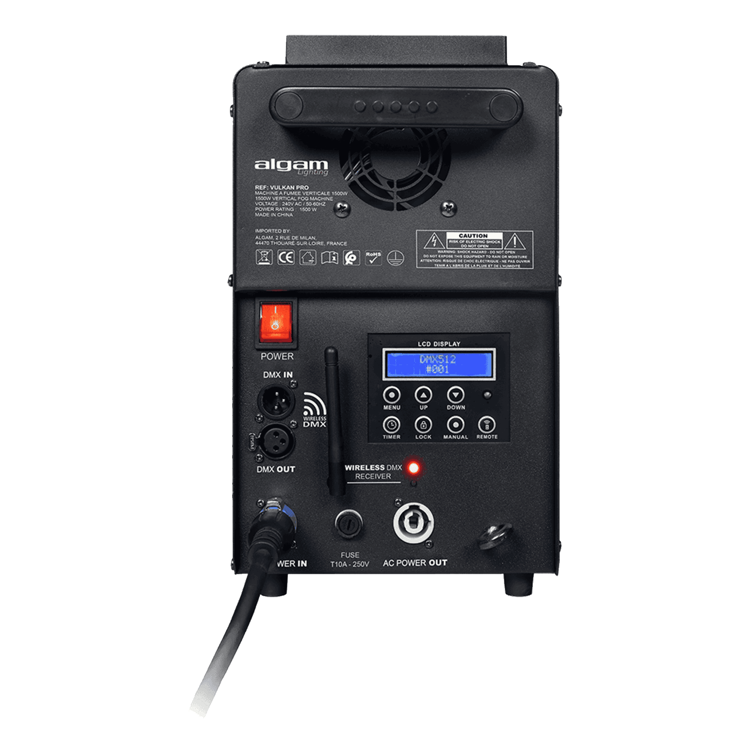 La macchina del fumo Vulkan Pro combina un effetto CO2 estremamente efficace con uno spettacolo di luci potente, grazie ai suoi 24 LED da 3W. Posizionata orizzontalmente o verticalmente, la macchina si adatta a diverse configurazioni e si integra perfettamente in un’installazione DMX cablata o wireless. Offre un’ampia gamma di modalità operative e impostazioni: intervalli e durate di attivazione, timer automatico, emissione automatica e manuale del volume di fumo. È possibile posizionarla sia in orizzontale o in verticale.