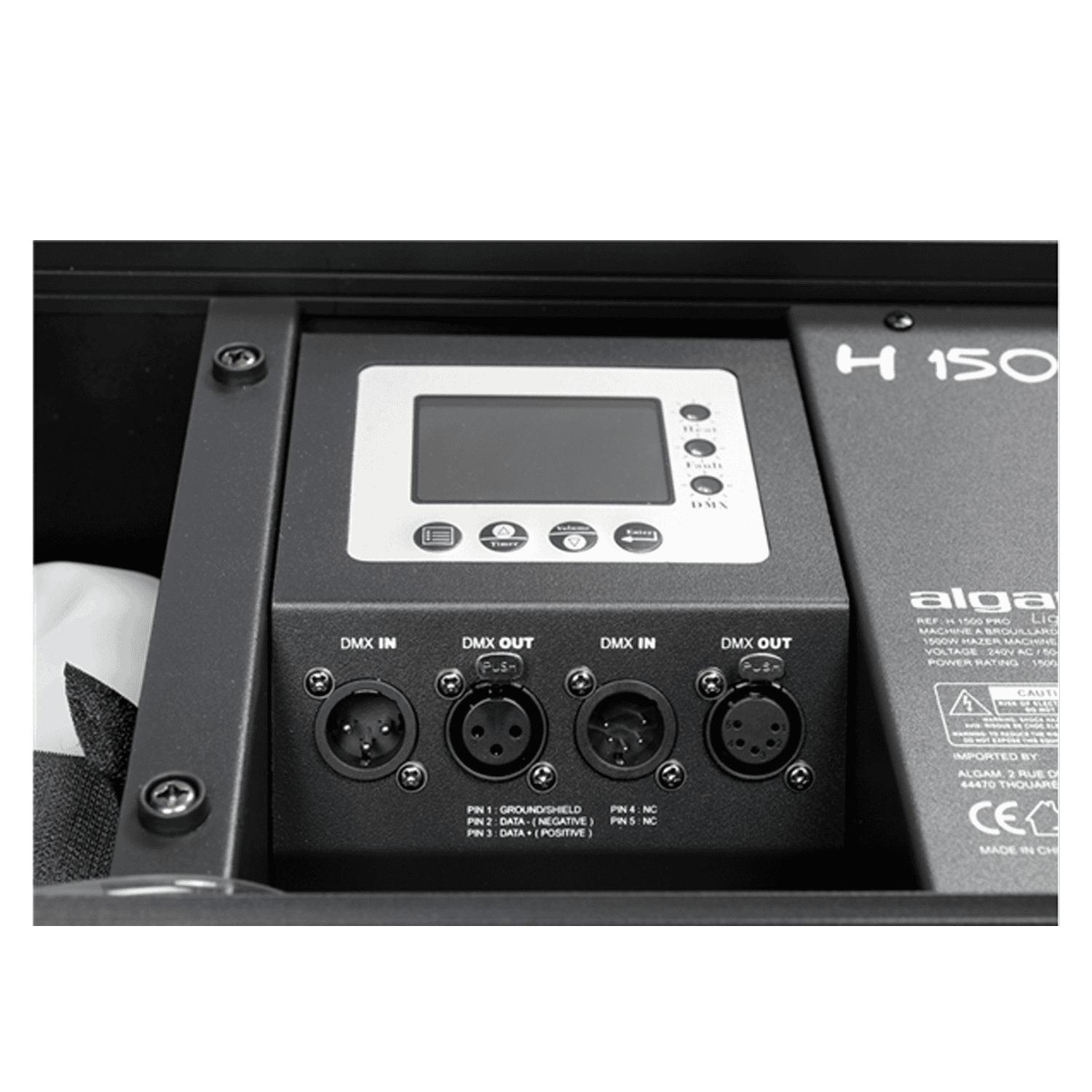 La macchina della nebbia H1500-PRO è alloggiata in un robusto flight case per un facile trasporto e diventerà subito indispensabile per migliorare i tuoi spettacoli di luci. Con una portata massima superiore a 1000 metri cubi al minuto, un basso consumo di fluido di circa 12 ml al minuto e un tempo di riscaldamento di circa 50 secondi, l’H1500-PRO si rivelerà altamente efficiente in una grande varietà di applicazioni. Offre diverse modalità operative e numerose impostazioni (intervalli e durate di attivazione, timer automatico, volume di fumo in uscita, velocità della ventola), tutte controllabili tramite DMX o dallo schermo di controllo.