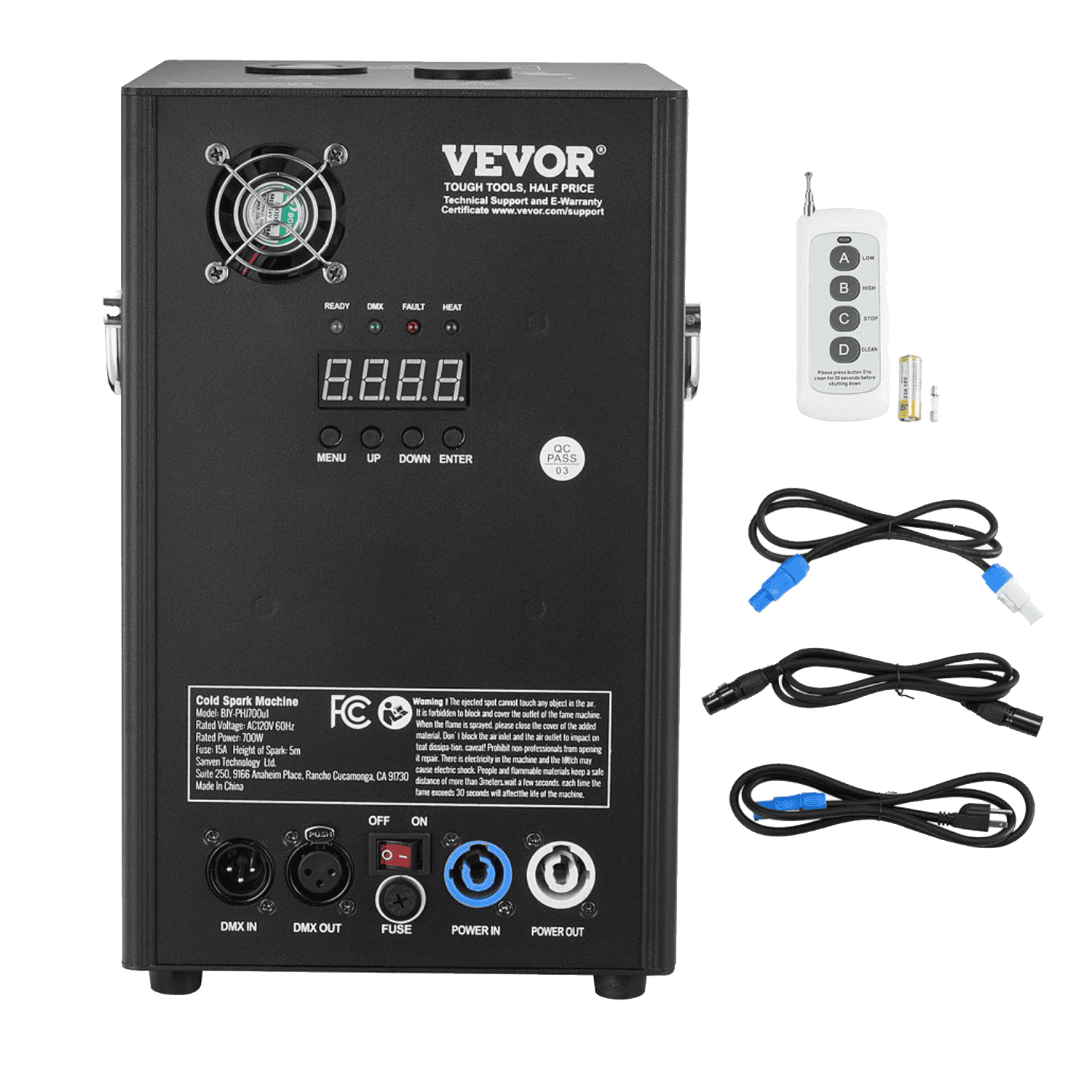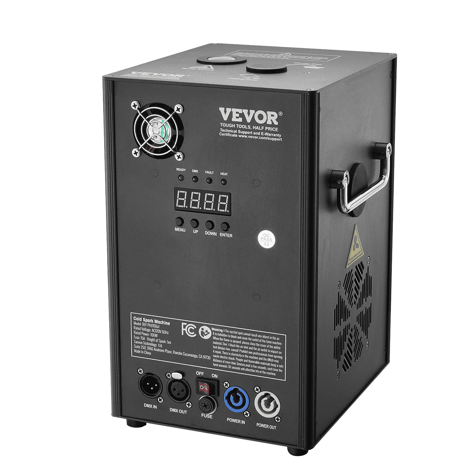 La macchina spark per fuochi d’artificio vanta una potente uscita da 700W e utilizza un sistema di controllo DMX avanzato, consentendo connessioni multiple per soddisfare le tue esigenze. Puoi collegare contemporaneamente linee di segnale per un massimo di 6 macchine, creando uno spettacolo di luci abbagliante che affascina l’intero pubblico. La macchina presenta un intervallo di altezza regolabile di 2-5 metri, offrendo tre livelli regolabili per ottenere diversi effetti di luce e creare un ottima atmosfera. Dotata di un nuovo sistema di imbuto e di un design di grande capacità da 180g, la macchina migliora l’efficienza di alimentazione prolungando l’esperienza dell’utente. Lo schermo LED mostra lo stato del lavoro in tempo reale e la maniglia portatile la rende facile da trasportare e godersi le sue prestazioni sempre e ovunque. Dispone di un radiatore per un’efficiente dissipazione del calore, garantendo un funzionamento prolungato e proteggendo i componenti interni da eventuali rischi. La macchina spark adatta per una varietà di eventi come: bar, feste, discoteche, concerti, matrimoni e cerimonie.