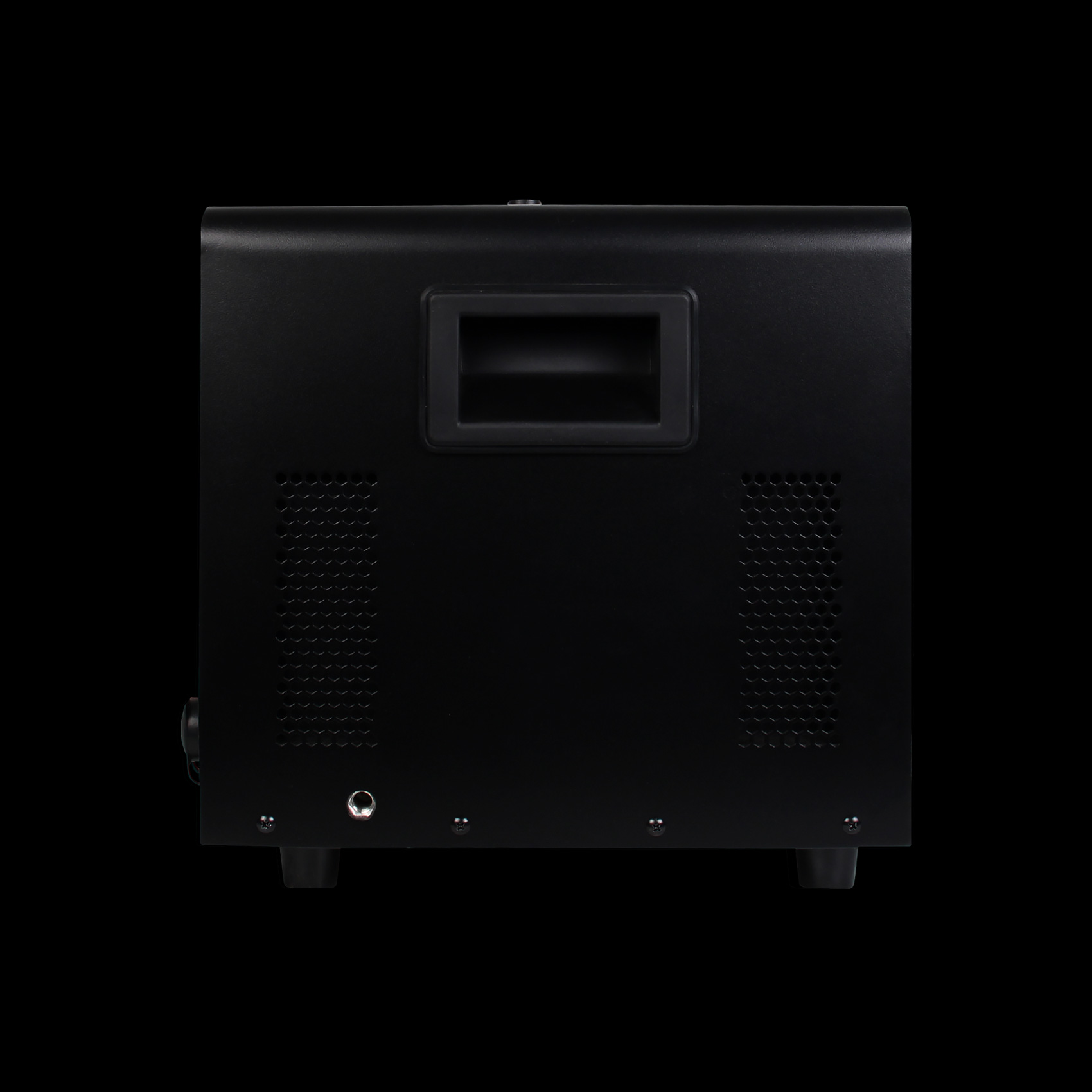 Con un peso di 17 kg e dimensioni compatte (29 × 31 × 31 cm), la macchina è facile da trasportare, installare e integrare in setup scenici professionali, rack da spettacolo e strutture modulari. Le griglie di aerazione ottimizzate garantiscono un raffreddamento efficace e un funzionamento stabile anche in condizioni di lavoro intensivo.