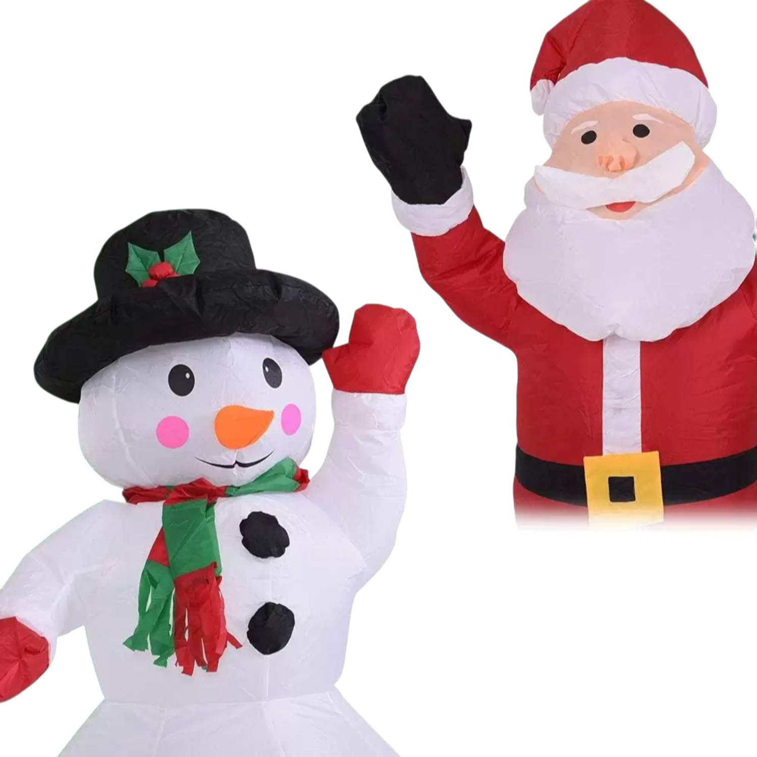 Arco gonfiabile Natalizio luminoso 2,4 metri con Babbo Natale e Pupazzo di Neve con pompa auto gonfiante