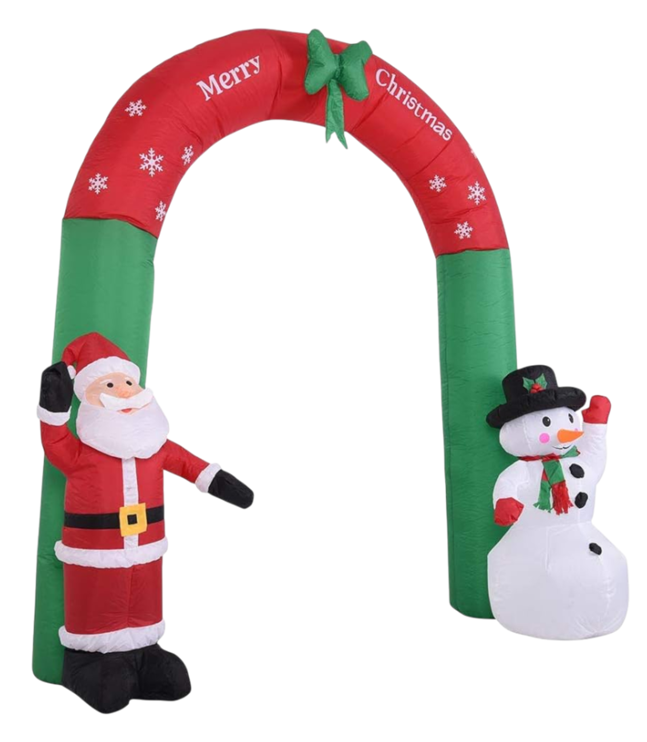 Arco gonfiabile natalizio, decorazione esterna, arco luminoso Babbo Natale e Pupazzo di Neve