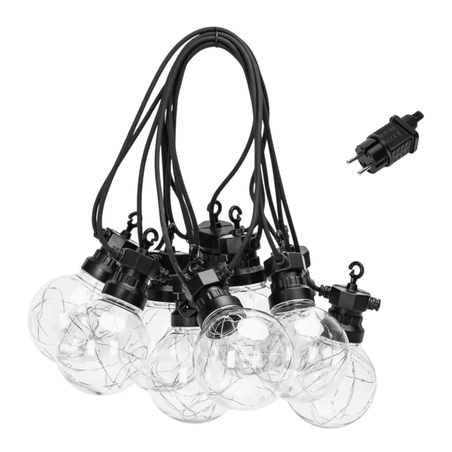 Catena Luminosa a LED luce calda da 8metri con 10 sfere trasparenti IP44 per uso Interno/Esterno