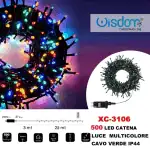 Catena luminosa di natale con filo verde applicabile in ambienti esterni ed interni. Adatta come decorazione e l’allestimento di case, perfetta anche per addobbare giardini, gazebi e spazi all’aperto grazie al suo grado di protezione IP44. Munita di trasformatore e controller con 8 giochi di luci tra cui pure la modalità fissa.