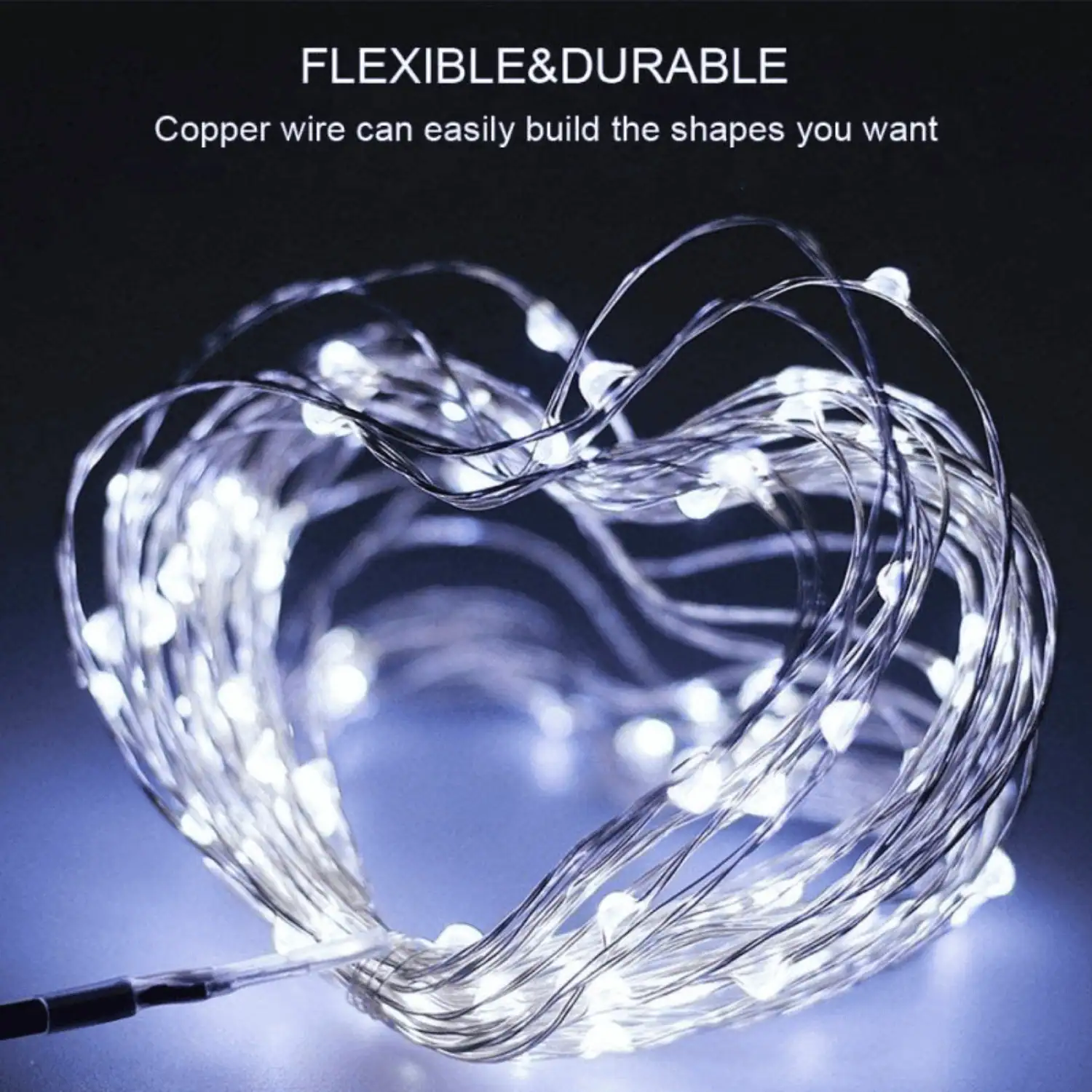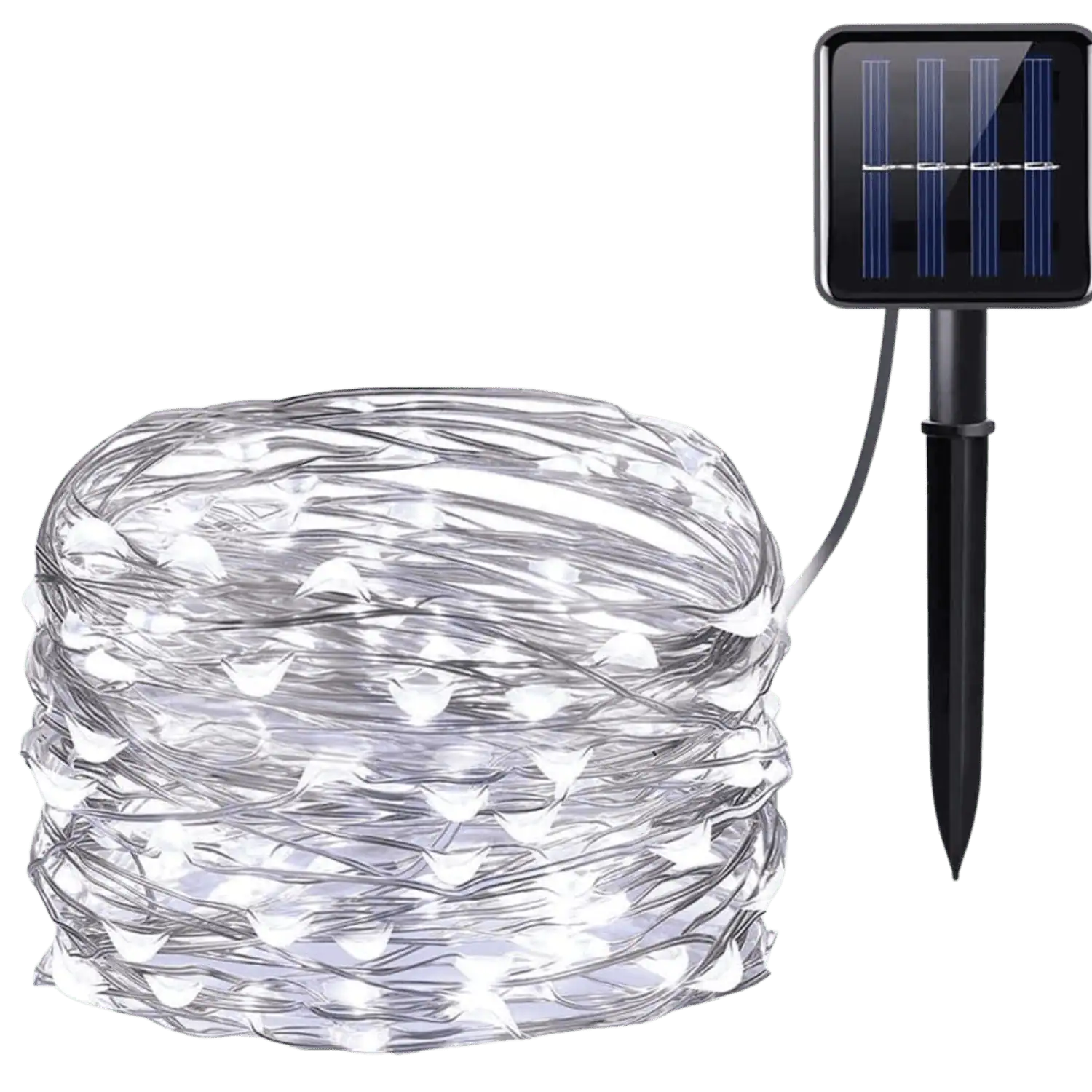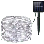 Catena Luminosa Solare di Natale a 100 MiniLED con 8 giochi di Luce per uso Interno/Esterno (Luce Bianca)