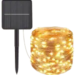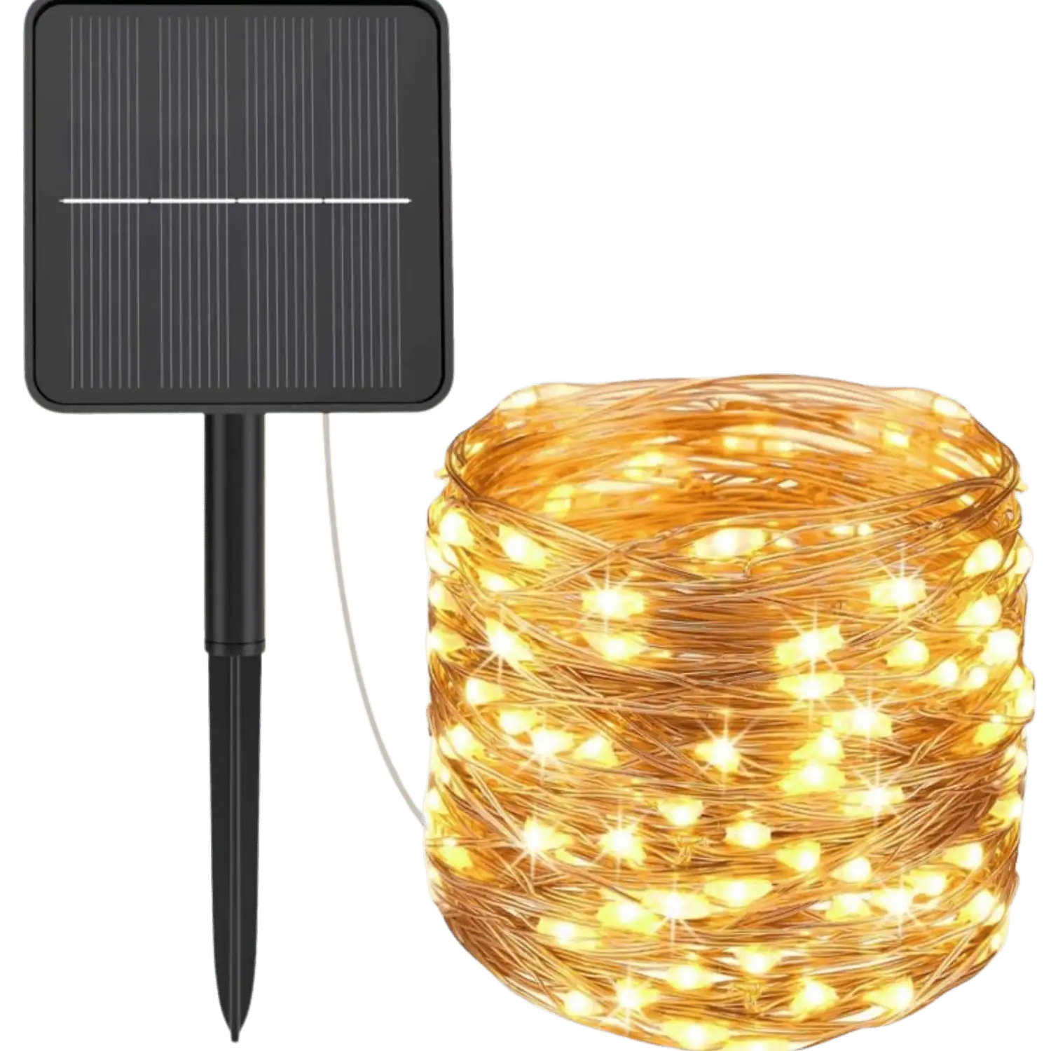 Catena Luminosa Solare di Natale a 100 MiniLED con 8 giochi di Luce per uso Interno/Esterno (Luce Calda)