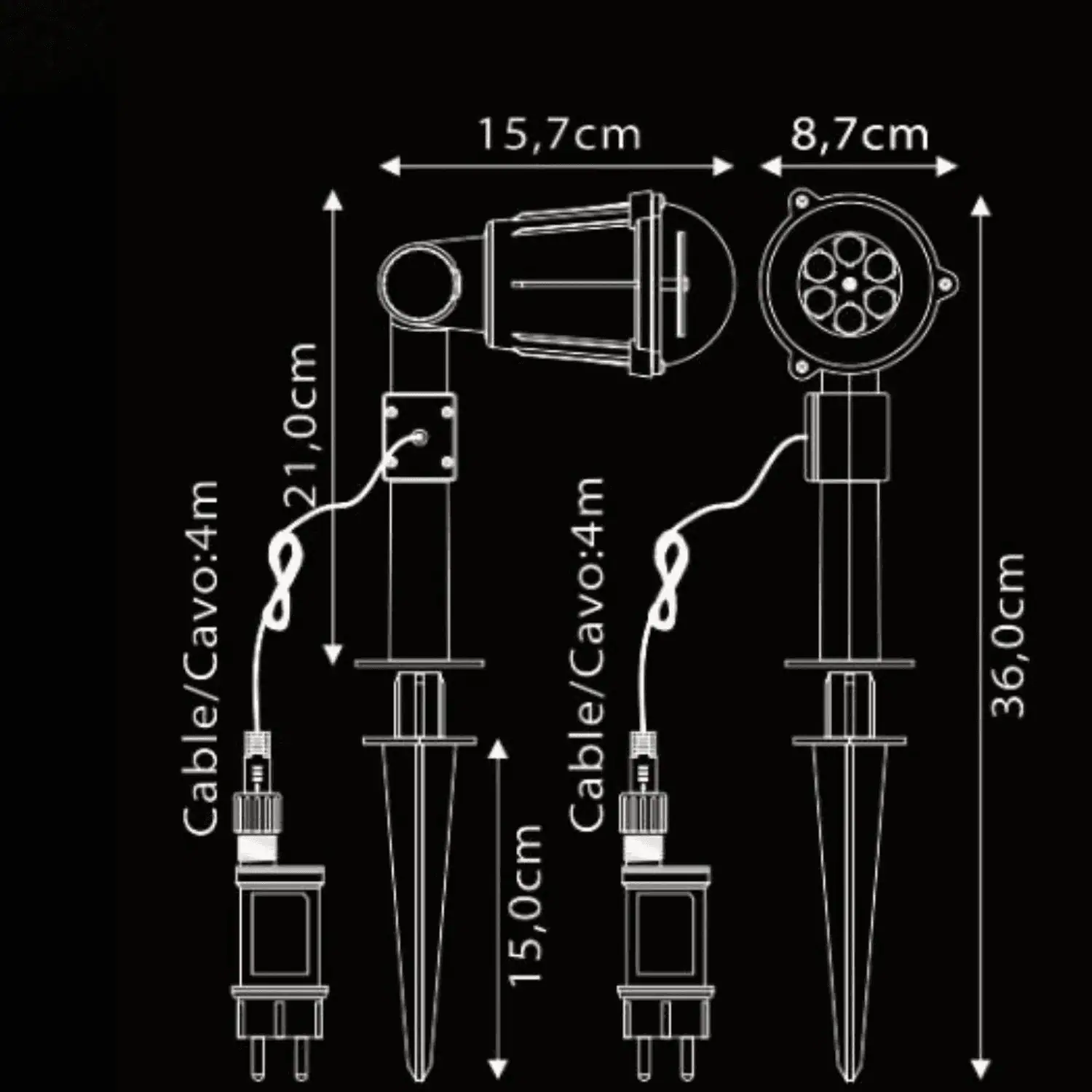 Proiettore Decorativo natalizio LED a Picchetto con luci RGBW e giochi Natalizi da esterno con picchetto impermeabile gradazione ip44 resistente agli agenti atmosferici