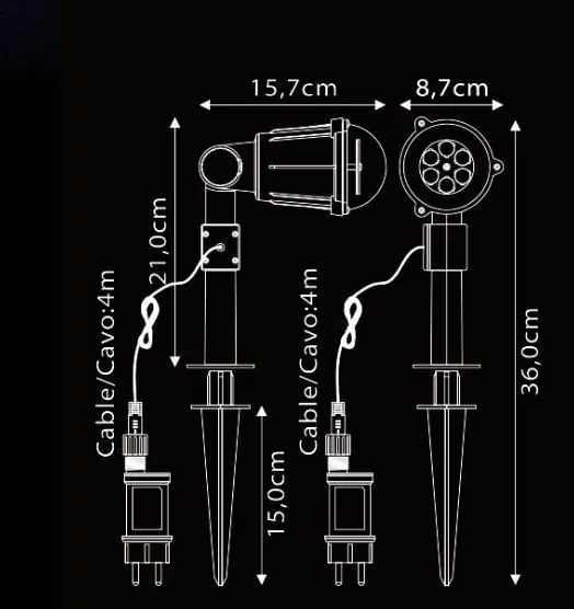 Proiettore Decorativo natalizio LED a Picchetto con luci RGBW e giochi Natalizi da esterno con picchetto impermeabile gradazione ip44 resistente agli agenti atmosferici