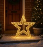 Scegli la stella luminosa di Natale 3D con filo di rame argentato e LED bianco caldo per rendere speciale la tua casa durante le festività. Combinala con altre decorazioni natalizie luminose per creare un insieme armonioso e luminoso, perfetto per chi ama curare ogni dettaglio dell’arredamento natalizio con stile e originalità.
