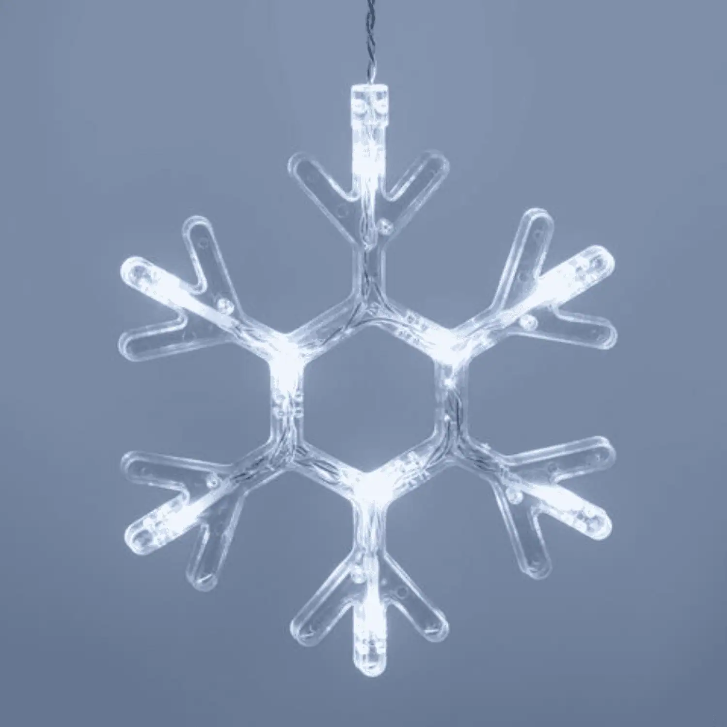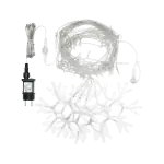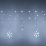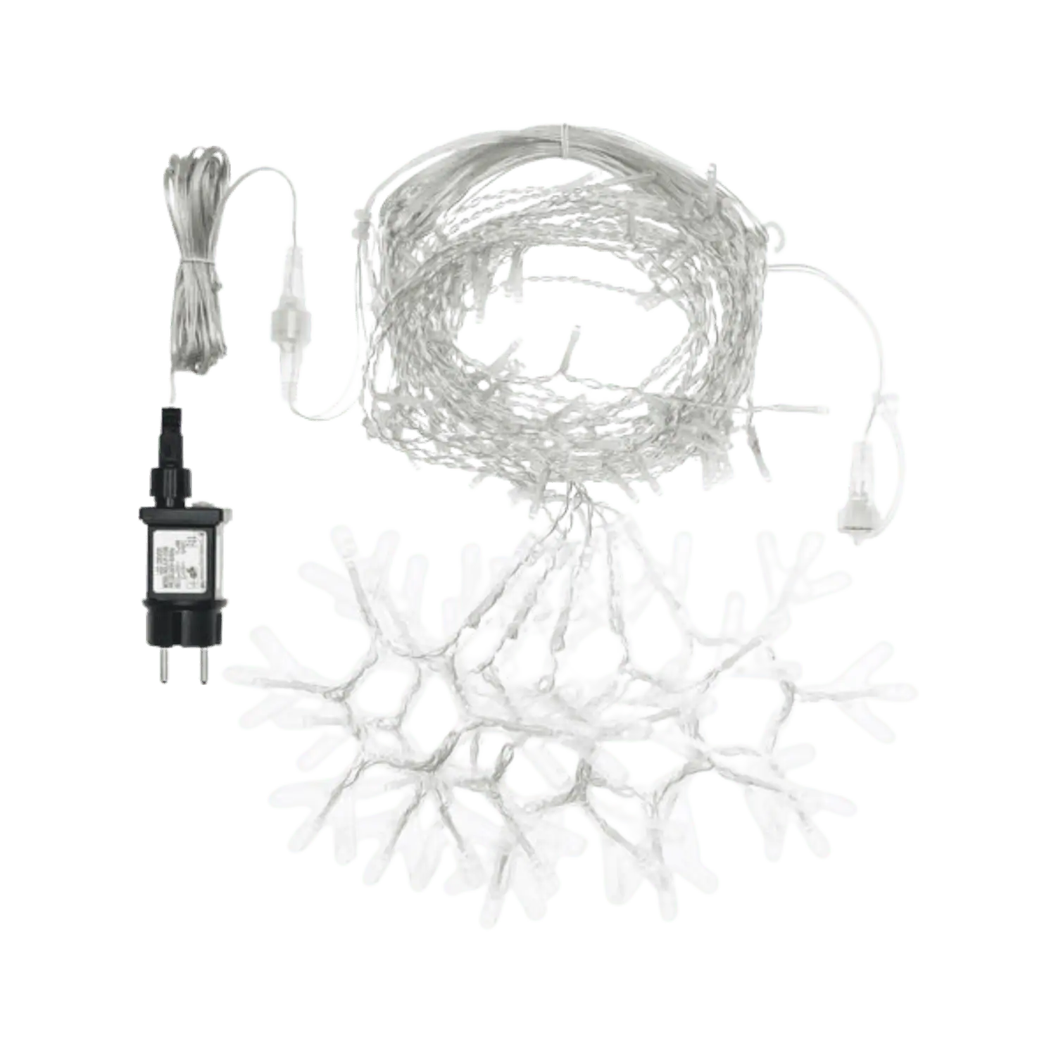 Tenda luminosa allungabile con fiocchi di neve di natale con filo trasparente applicabile in ambienti esterni ed interni. Adatta come decorazione e l’allestimento di case, perfetta anche per addobbare giardini, gazebi e spazi all’aperto grazie al suo grado di protezione IP44. Munita di trasformatore e controller con 8 giochi di luci tra cui pure la modalità fissa.