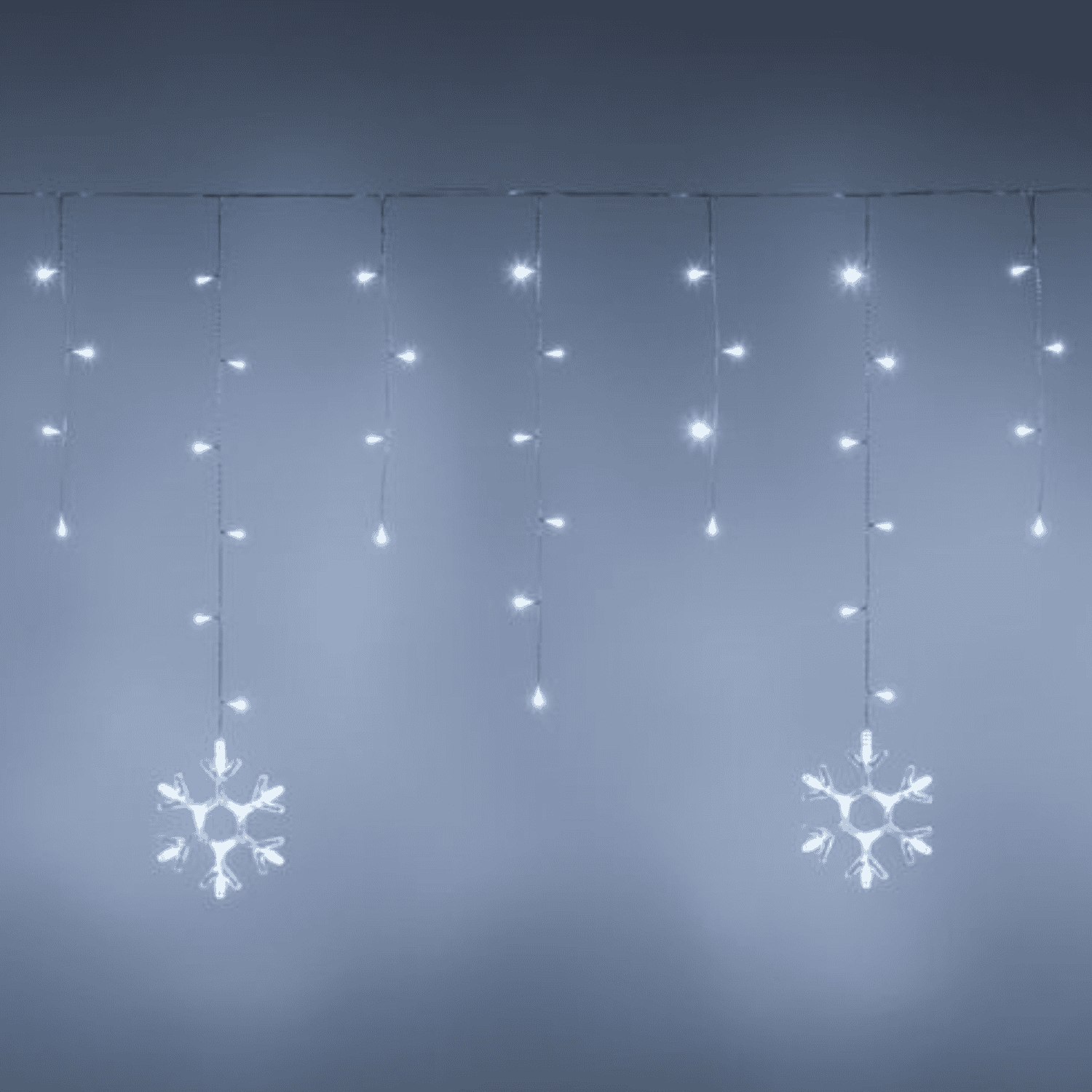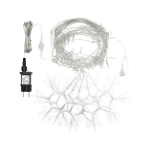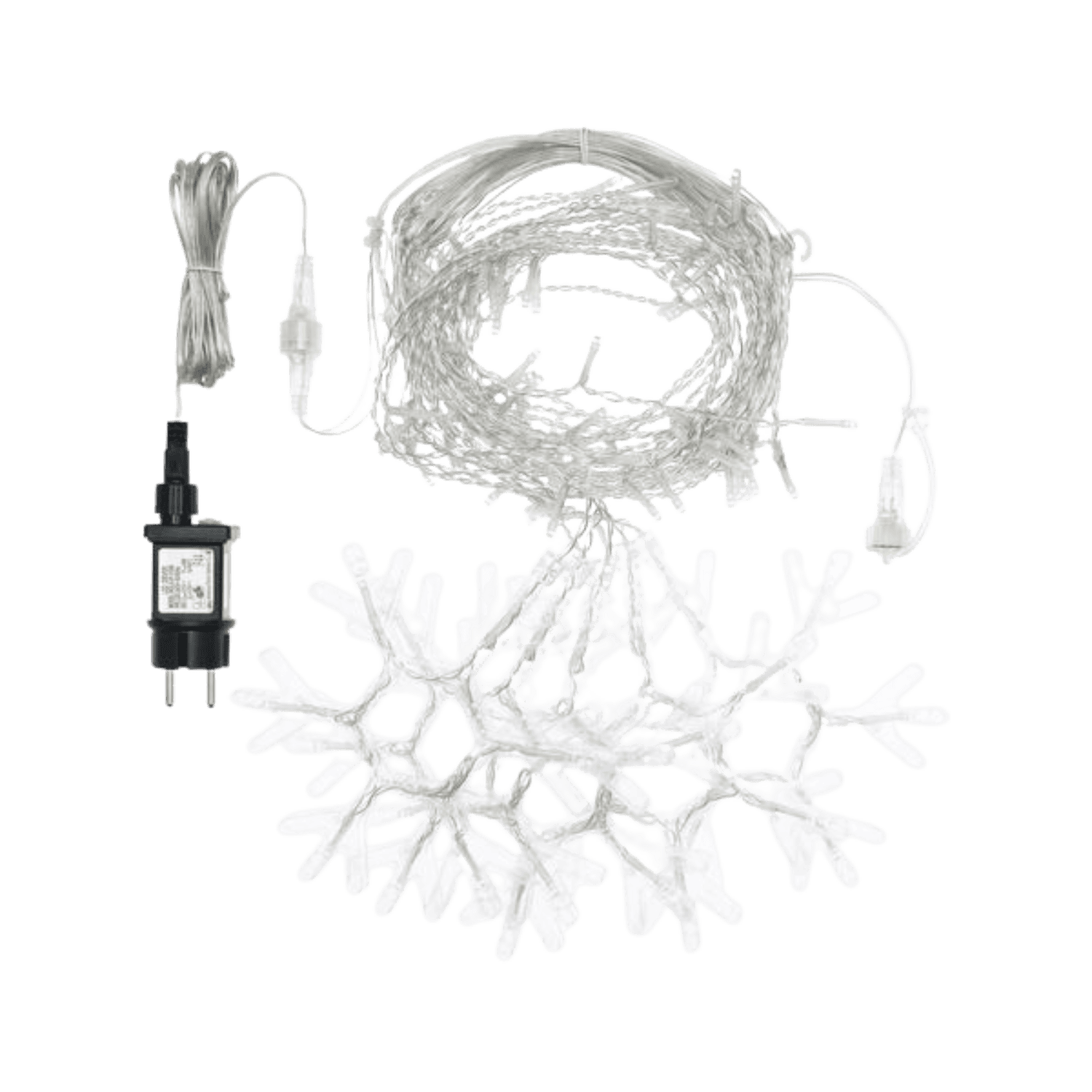 Tenda luminosa allungabile con fiocchi di neve di natale con filo trasparente applicabile in ambienti esterni ed interni. Adatta come decorazione e l’allestimento di case, perfetta anche per addobbare giardini, gazebi e spazi all’aperto grazie al suo grado di protezione IP44. Munita di trasformatore e controller con 8 giochi di luci tra cui pure la modalità fissa.