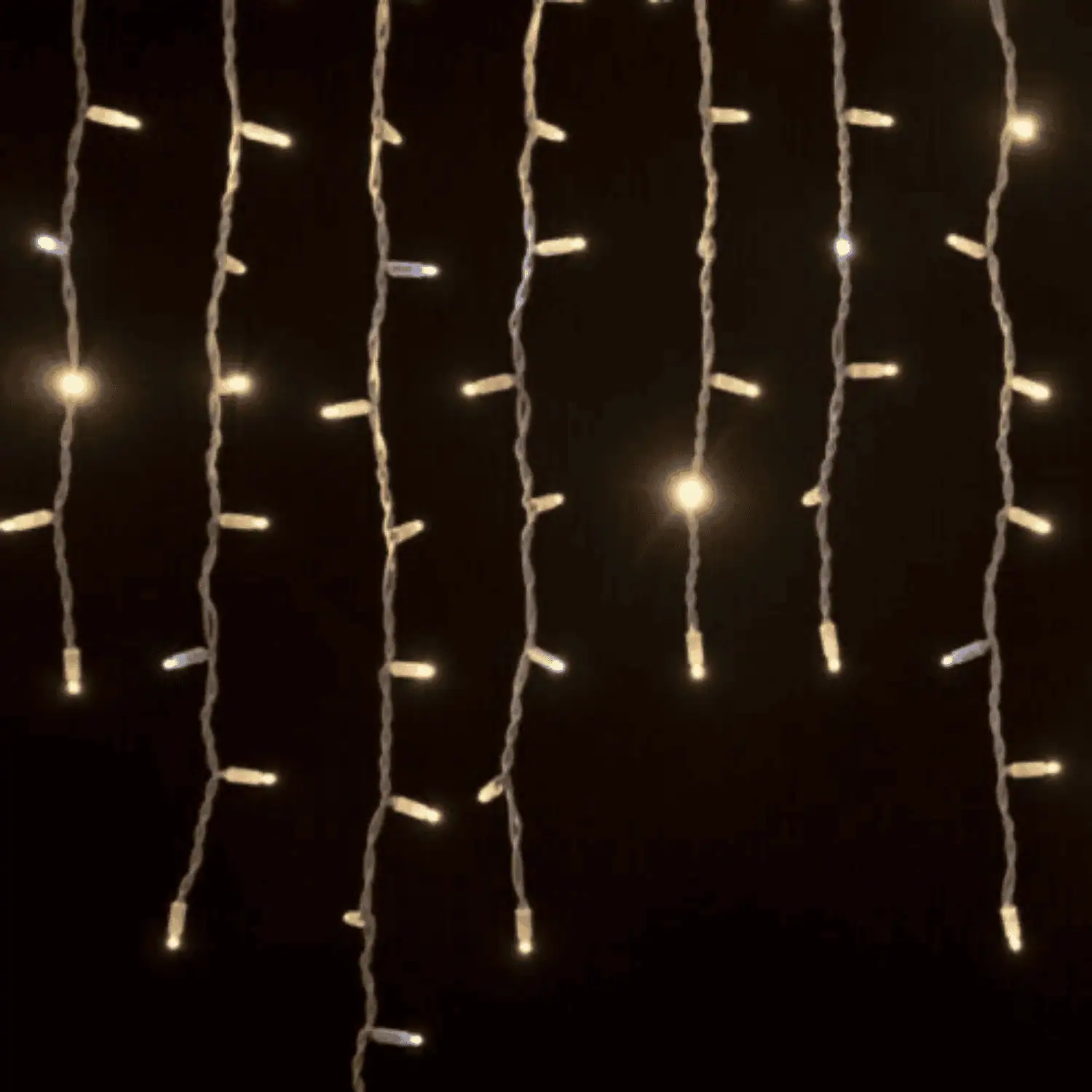 Tenda luminosa allungabile di natale con filo bianco applicabile in ambienti esterni ed interni. Adatta come decorazione e l’allestimento di case, perfetta anche per addobbare giardini, gazebi e spazi all’aperto grazie al suo grado di protezione IP44. Munita di trasformatore con 230 luci calde fisse e 26 luci bianche intermittenti.