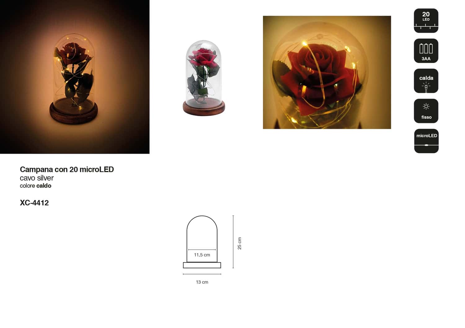 Campana decorativa Rosa eterna in campana con 20 micro LED luce calda idea regalo romantica per ogni occasione.