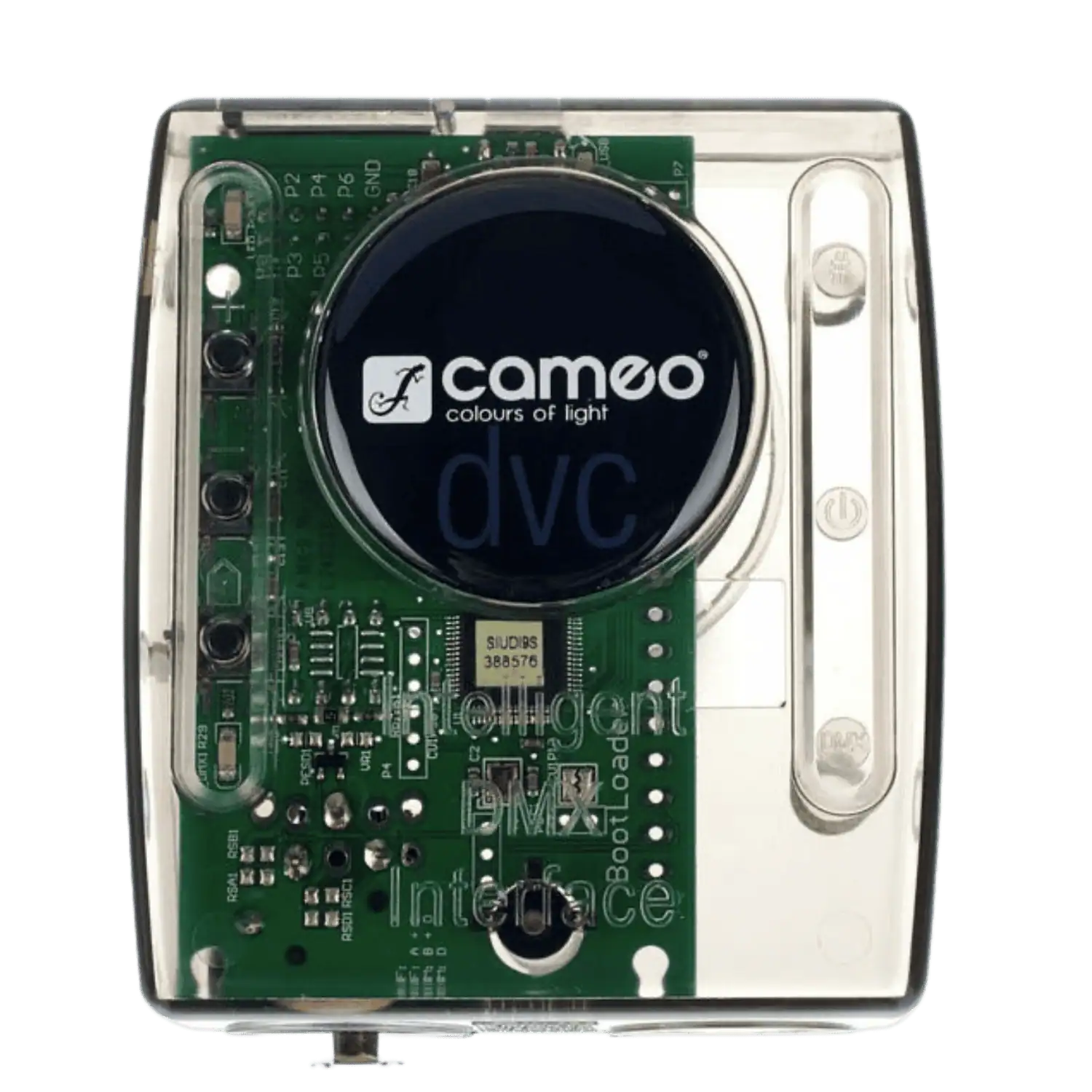 L’interfaccia Cameo DVC con il relativo software e i dispositivi di illuminazione compatibili con DMX possono essere comodamente controllati da PC o Mac. In modalità live, l’interfaccia “plug & play” offre 512 canali DMX e i giochi di luce programmati possono essere copiati nella memoria flash integrata, per l’utilizzo senza computer come unità stand-alone con 256 canali. L’interfaccia è dotata di una porta Mini USB come ingresso e di un’uscita DMX a 3 poli e viene alimentata attraverso l’uscita USB del computer. Tre pulsanti consentono la selezione del programma e la regolazione della luminosità in modalità stand-alone, che richiede un alimentatore USB standard da 5V. Il software include un’ampia gamma di strumenti per l’editing dal vivo, un analizzatore audio e un MIDI Clock per la sincronizzazione della luce e della velocità della musica, nonché una visualizzazione 3D dei giochi di luce programmati in tempo reale.