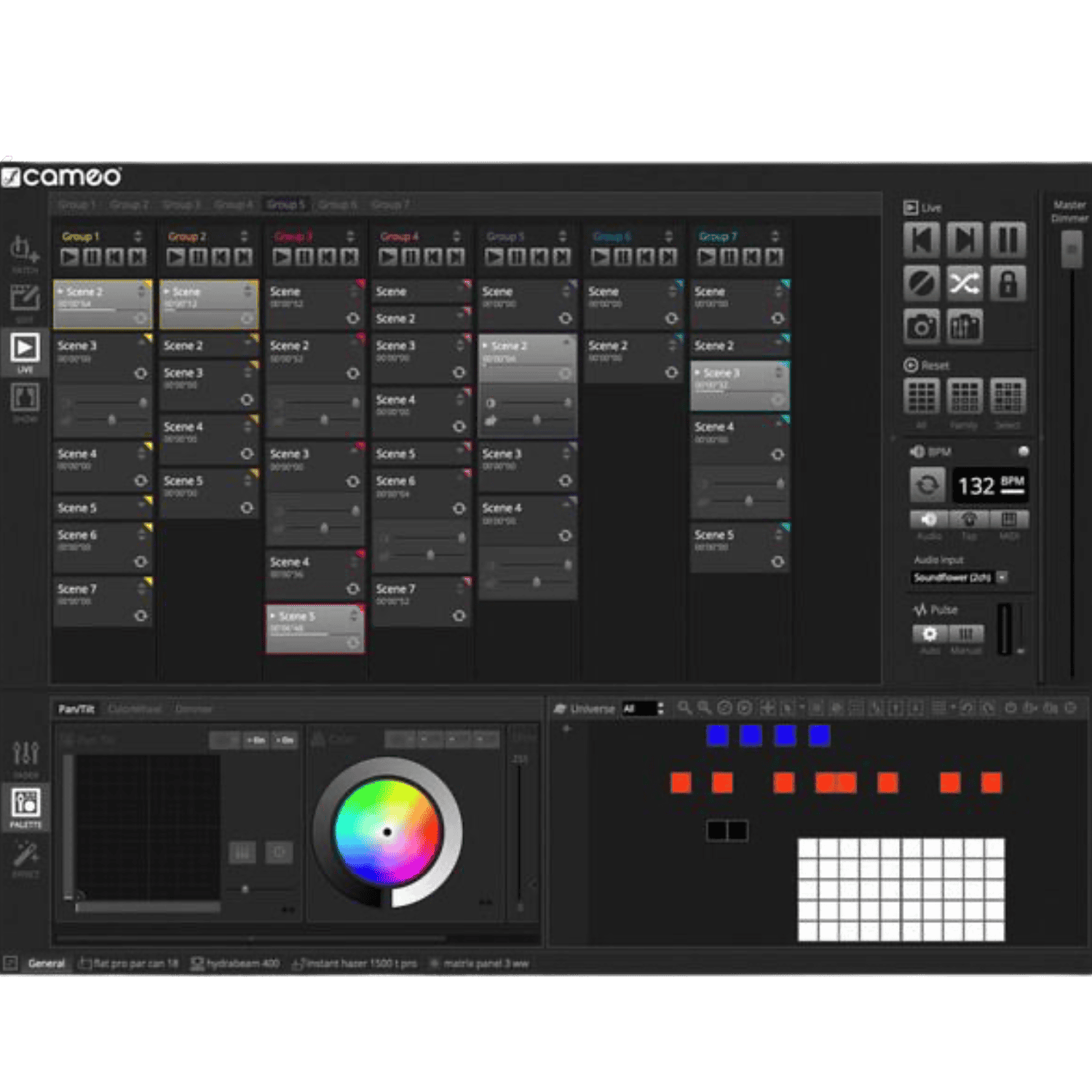 L’interfaccia Cameo DVC con il relativo software e i dispositivi di illuminazione compatibili con DMX possono essere comodamente controllati da PC o Mac. In modalità live, l’interfaccia “plug & play” offre 512 canali DMX e i giochi di luce programmati possono essere copiati nella memoria flash integrata, per l’utilizzo senza computer come unità stand-alone con 256 canali. L’interfaccia è dotata di una porta Mini USB come ingresso e di un’uscita DMX a 3 poli e viene alimentata attraverso l’uscita USB del computer. Tre pulsanti consentono la selezione del programma e la regolazione della luminosità in modalità stand-alone, che richiede un alimentatore USB standard da 5V. Il software include un’ampia gamma di strumenti per l’editing dal vivo, un analizzatore audio e un MIDI Clock per la sincronizzazione della luce e della velocità della musica, nonché una visualizzazione 3D dei giochi di luce programmati in tempo reale.