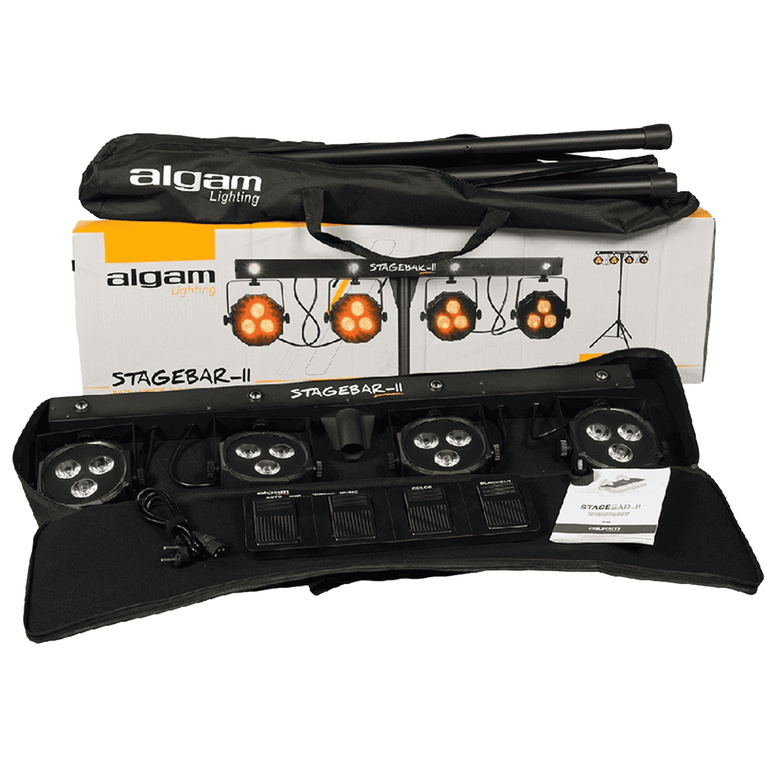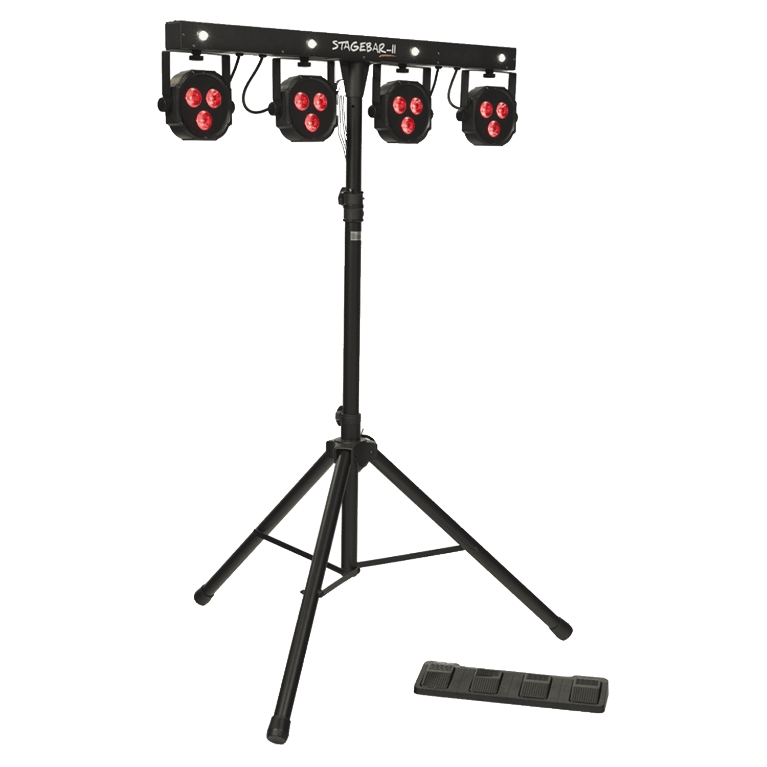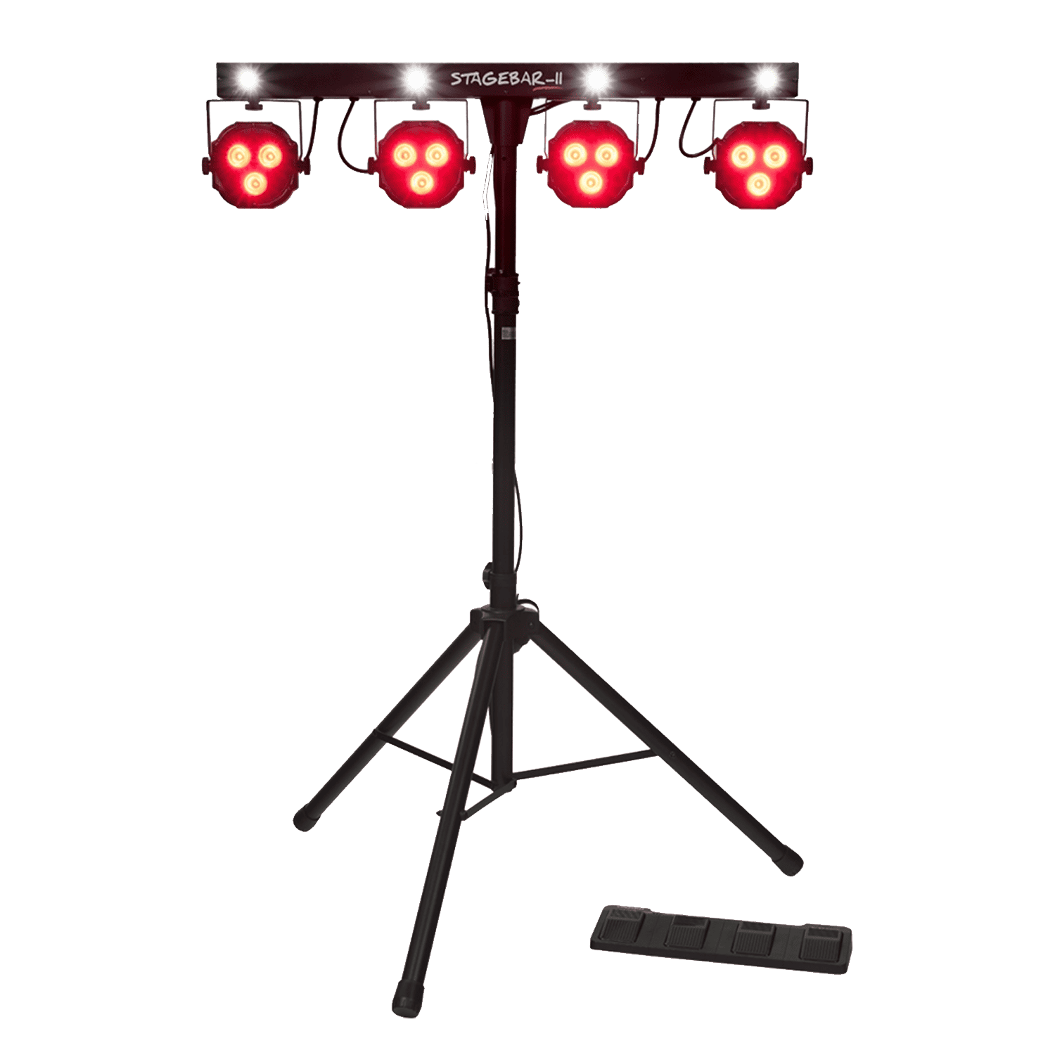 Il Stagebar-II è un sistema di illuminazione a LED all-in-one che fornisce una soluzione di illuminazione e intrattenimento ideale per DJ, discoteche mobili e gruppi musicali. Composto da 4 PAR LED RGB sormontati da led bianchi per l’effetto strobo, questo sistema completo può essere installato in pochi istanti sul suo robusto treppiede telescopico, riducendo al minimo i tempi di installazione durante le vostre esibizioni. Viene fornito con una custodia da trasporto e una pedaliera per il controllo da remoto.