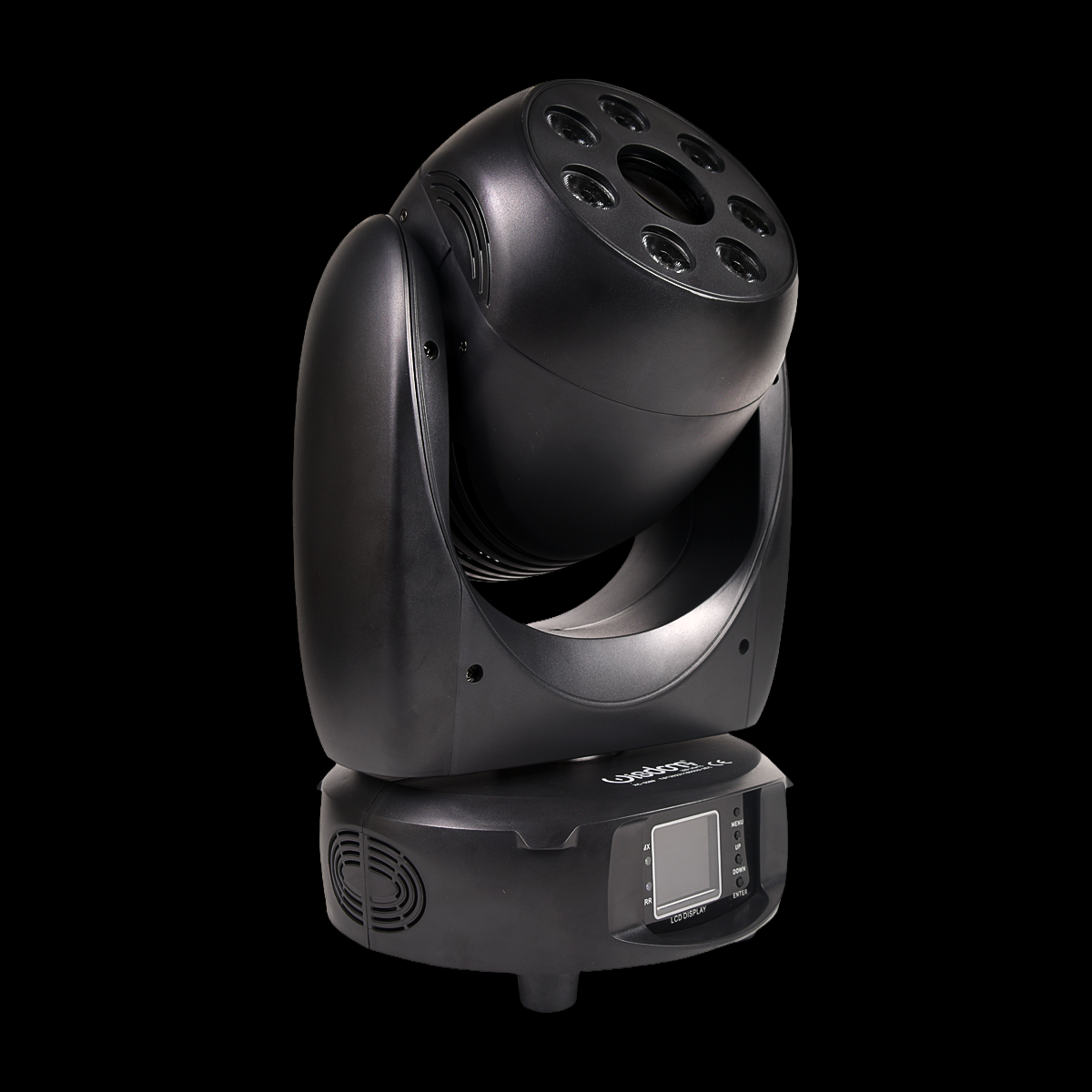 Dal punto di vista creativo, la testa mobile offre una ricca dotazione di effetti. Dispone di gobo rotanti e gobo fissi, che consentono di proiettare immagini e forme luminose di grande impatto scenografico. La presenza dei prismi amplifica ulteriormente l’effetto visivo, creando moltiplicazioni del fascio e giochi di luce spettacolari. La ruota colori, con colori saturi e transizioni fluide, permette di ottenere effetti arcobaleno e mezzi colori, ideali per spettacoli dinamici e ambientazioni suggestive.