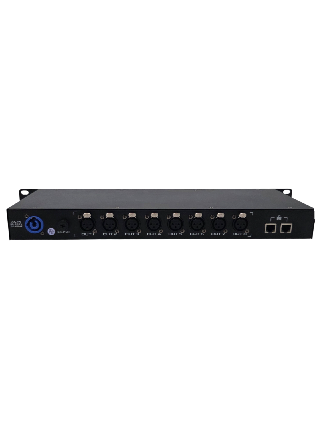 249Splitter DMX Artnet CN-8 con 8 uscite isolate, 2 ingressi cat5. Affidabile e compatibile con software luci.