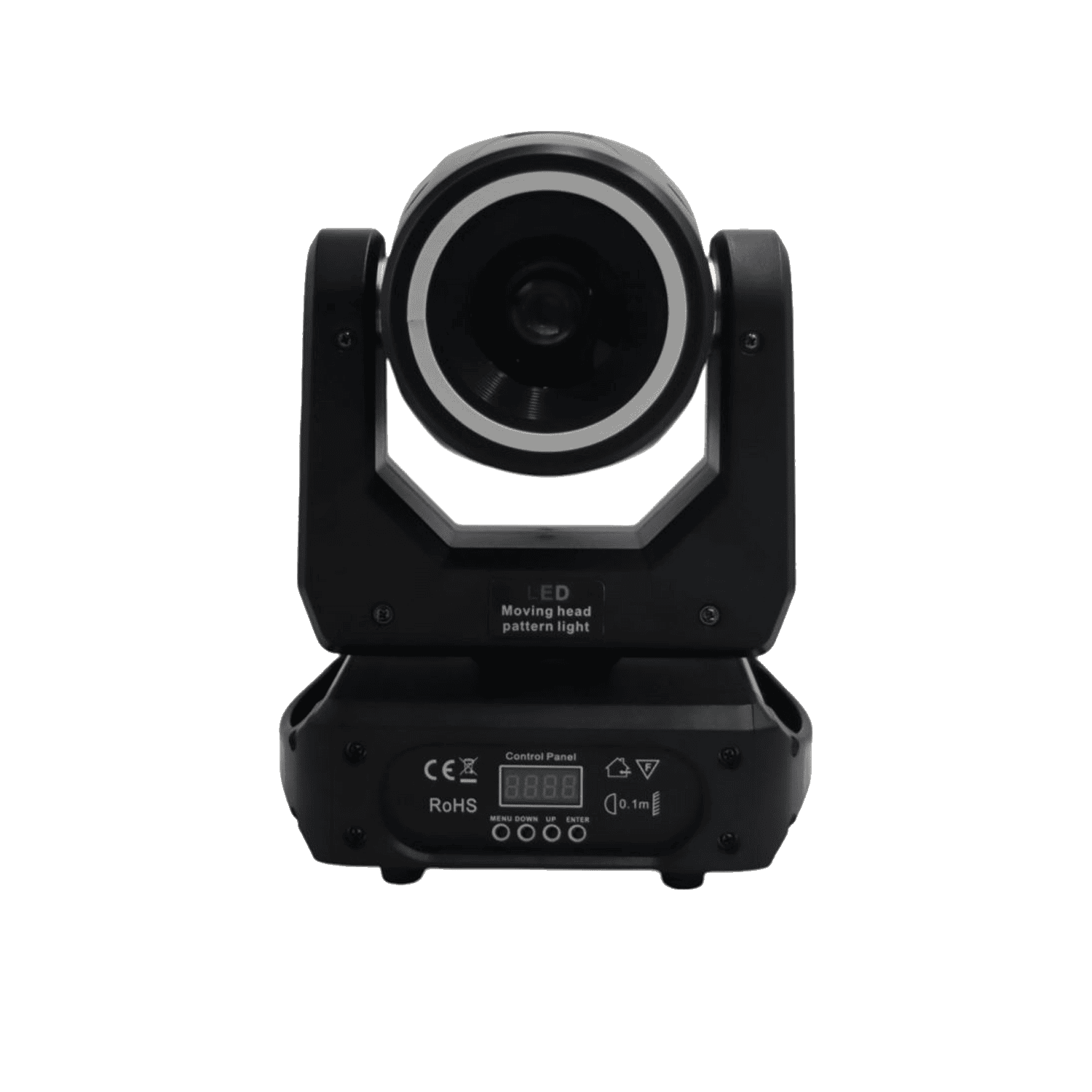 Mini Testa Mobile Spot LED 150W con Anello Ring Light colori RGB.  All’ interno della Testa mobile troveremo la ruota colori più luce bianca e Prisma rotante a 6 facce rendendo magico e unico il tuo spettacolo. Canali di controllo centralina dmx Ch14, inoltre le altre modalità sono: Master slave, Ritmo di musica, Controllo di esecuzione automatica. Ingressi DMX IN & OUT, alimentazione VDE. Spot di dimensioni ultra compatte, ma di grandi pre stazioni. Garantisce consumi notevolmente ridotti e movimenti veloci, fluidi e precisi. Grazie alle dimensioni ridotte puoi installarla su una parete, appenderla con un gancio o semplicemente appoggiarla a terra. La Mini Testa Mobile Spot 150w è adatta come illuminazione professionale per: Eventi, Teatri, Luce scenica etc.