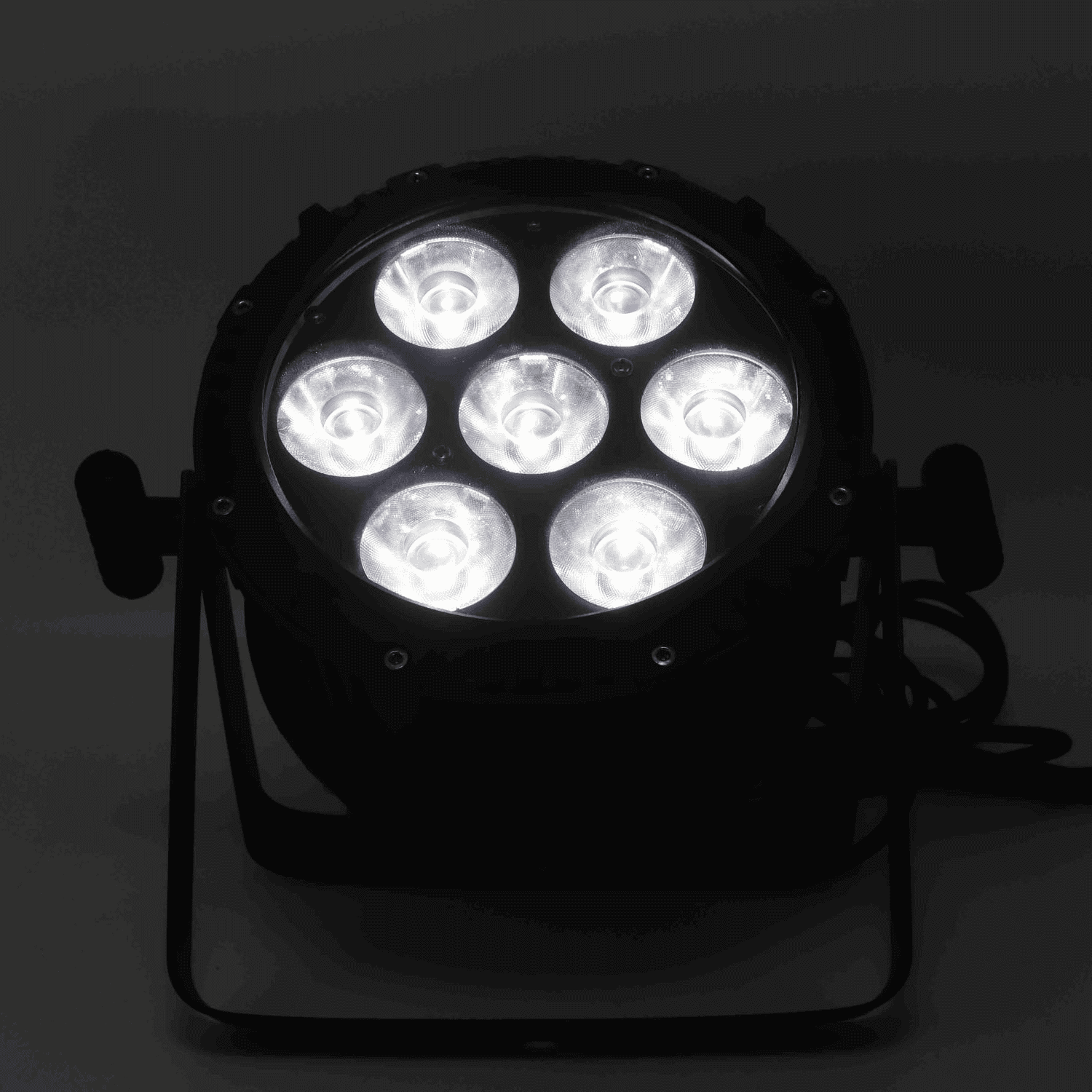 Il Par LED RGBW 7X20W può emettere diverse tipologie di luci con un’elevata disponibilità di miscelazione di colori disponibili. Il faretto NLIGHTING PAR LED è dotato di un vetro resistente con gradazione IP65, quindi adatto sia per uso interno ed esterno. All’interno dello scatolo oltre il Par LED presente anche un cordino di sicurezza e un gancio aliscaf per attaccare il Par LED al traliccio o Americana. Presenti anche le connessioni DMX IN e OUT e Alimentazione SHUCKO. Il PAR LED 7X20W dispone delle seguenti modalità: Automatico, Ritmo di musica, Dmx 512, funzione Strobo e Dimmer regolabile per l’intensità della luce da 0 a 100%. Il Par LED 7X20 può essere installato in numerose occasioni tra cui: Bar, Sale Per feste, Discoteche sia al chiuso che all’aperto.