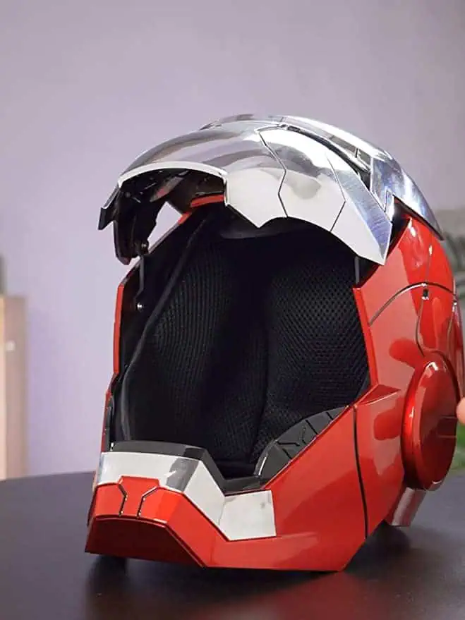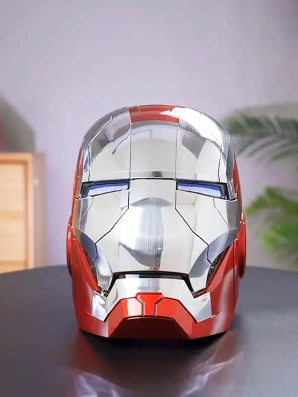 IRONMAN MK5 HELMET CONTROLLI VOCALI: MK5 Iron Man Helmet è il quinto set di armature creato da Iron Man. Ha una struttura realizzata con più parti semoventi elettroniche, controlli vocali in inglese e controllo touch. Puoi controllare a voce il colore della luce degli occhi e l’apertura e la chiusura dell’Iron Man Mask, sia in modalità standard che a multi-sezione.