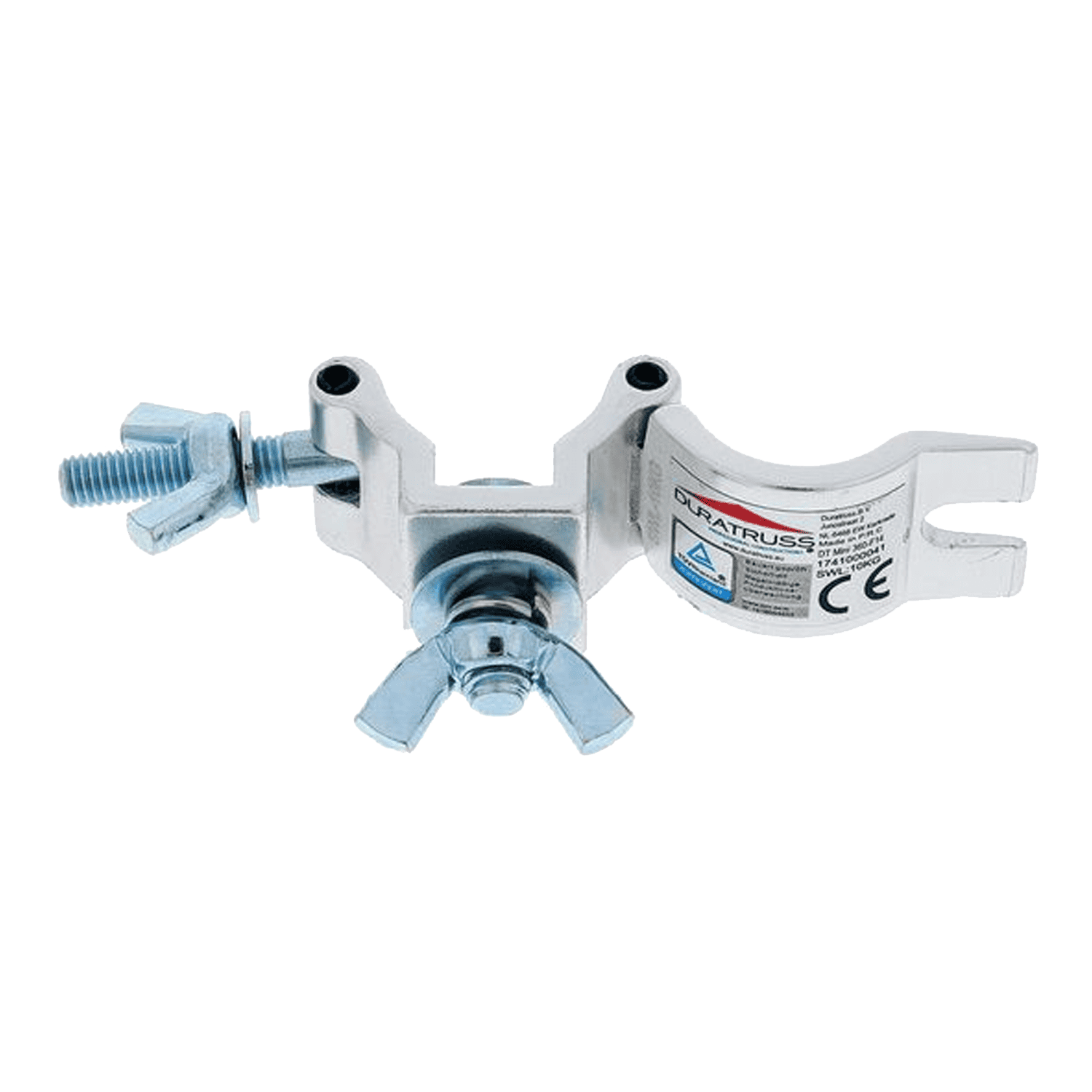 Il gancio duratruss è la scelta ideale per i dispositivi di piccole e medie dimensioni, per aggancio rapido e in sicurezza di proiettori luci su americane e tubi standard da 18 a 20 mm. Incluso set dado a farfalla e bullone M6