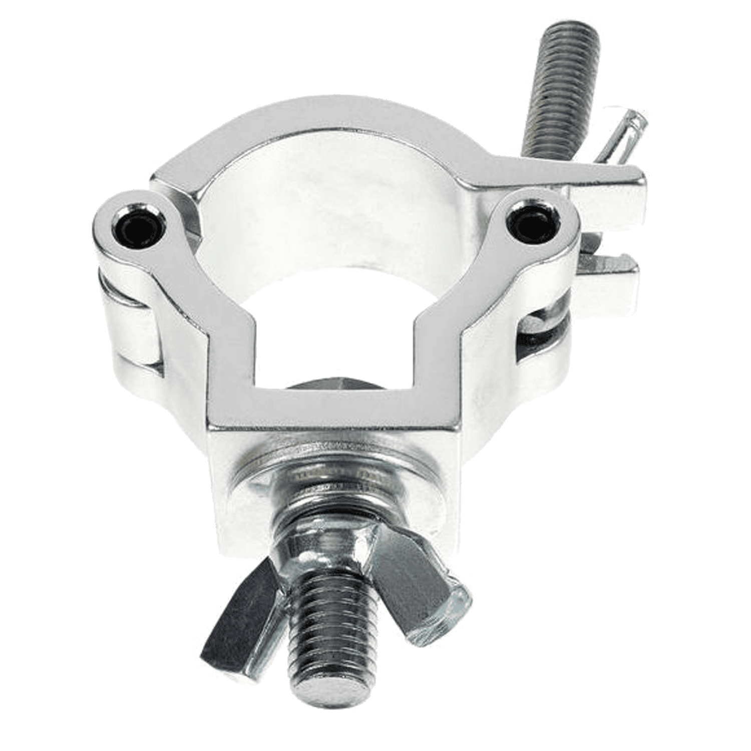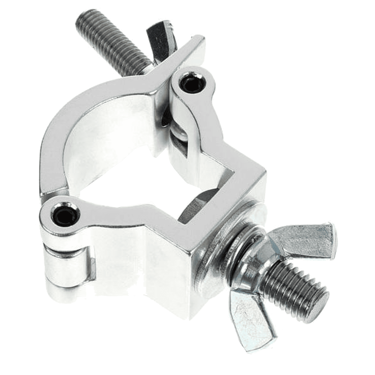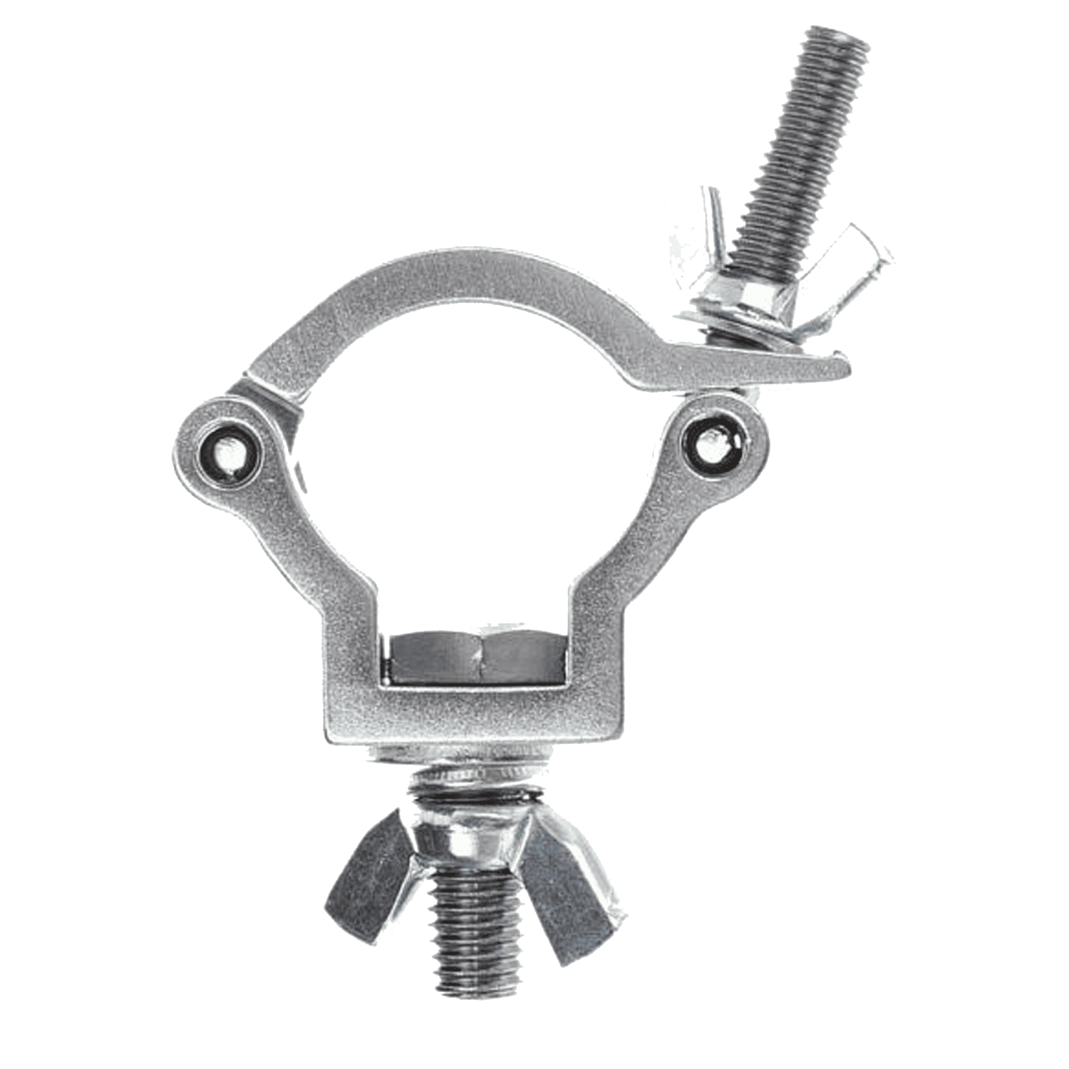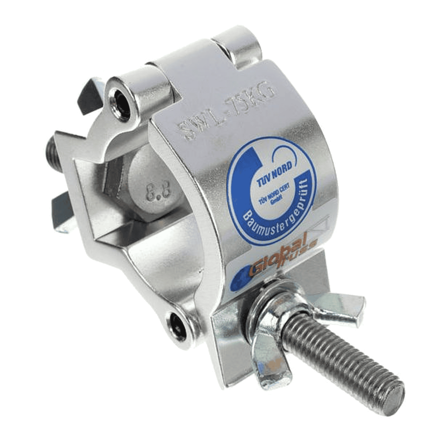 Il gancio global truss è la scelta ideale per i dispositivi di piccole e medie dimensioni, per aggancio rapido e in sicurezza di proiettori luci su americane e tubi standard da 32 a 35 mm. Incluso set dado a farfalla e bullone M8