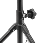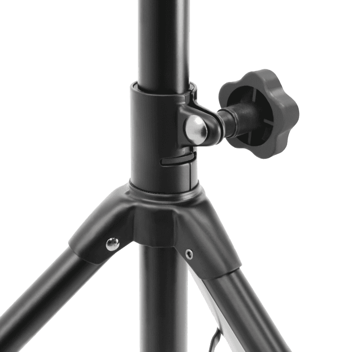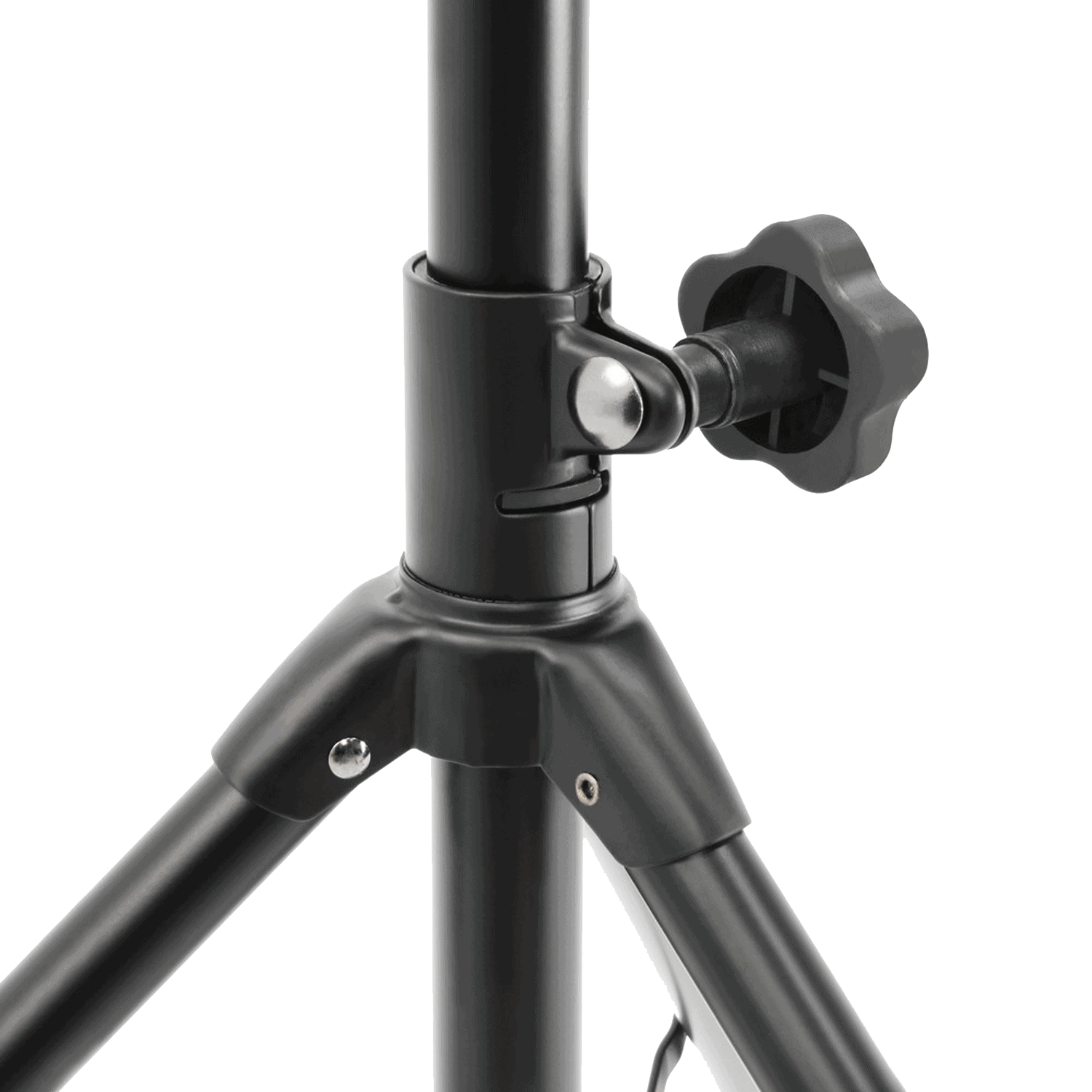 L’adam hall SLS6 è un supporto stativo per luci a treppiede pesanti con altezza regolabile. Questo supporto telescopico è di materiale acciaio per una maggiore durata e stabilità. Le gambe del treppiede e l’asta sono bloccate in posizione con manopole a rotazione facili da usare e sono dotate di un ulteriore perno di sicurezza per evitare cadute improvvise dell’altoparlante. Lo stand è in grado di supportare attrezzature fino a 25 kg di peso.