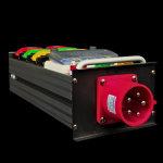 Il dispositivo è costruito all’interno di una struttura compatta e resistente, ideale per l’uso intensivo on-stage e in ambienti di lavoro dinamici. L’ingresso principale avviene tramite connettore CEE rosso 32A trifase, pensato per garantire un’alimentazione stabile e continua anche in presenza di carichi elevati tipici di impianti audio, luci e apparecchiature professionali.