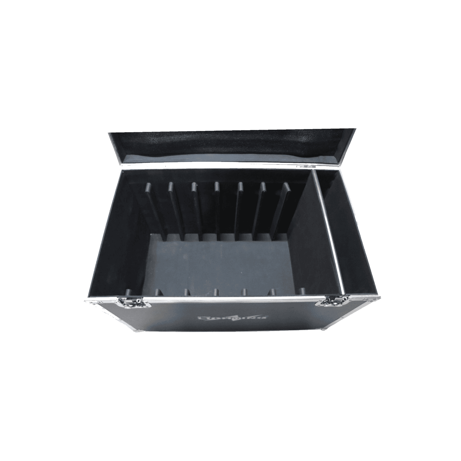 Baule flightcase vuoto rigido ideale per il trasporto di 8 mattonelle dance floor. Aprendo il baule avremo un ampio spazio per il trasporto delle mattonelle per una sicurezza assicurata per lo spostamento. Il baule è realizzato con materiale resistente con bordi e rifiniture in alluminio, ruote per lo spostamento, maniglie laterali ed apertura e chiusura a farfalla.