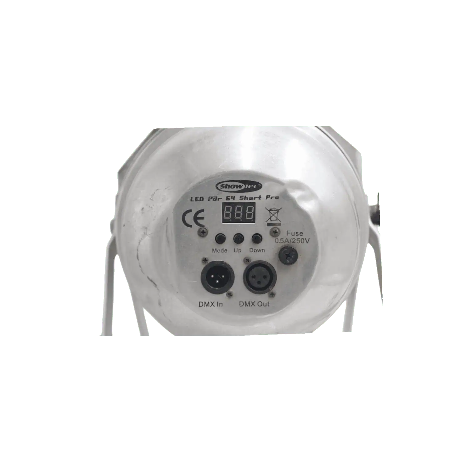 Par LED RGB potenza 30w. Il Par LED Short Pro Della Showtec risulta essere pratico e maneggevole con staffa regolabile per dare colore alle tue feste. Il Par LED è composto da 181 LED (36 LED rossi, 85 verdi e 60 LED blu) si usa in numerevoli occasioni come: Locali, pub, discoteche, sale per feste. Le sue dimensioni sono circa 26x32x38cm. Par LED dotato di un display sul retro per il controllo dei programmi e impostazioni. Le modalità di controllo disponibili sono: Controllo con centralina DMX 512, Modalità automatica e ritmo di musica. Spina civile come fonte di alimentazione e ingresso e uscita Dmx.