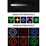 [Effetto sbalorditivo] La Coppia Testa mobile SPOT BEAM Può essere utilizzata da sola o in combinazione con una varietà di effetti e giochi luce, presentando un’illuminazione estremamente dinamica e di alta qualità, creando facilmente effetti di luce, giochi Gobo di immagini grazie al prisma.