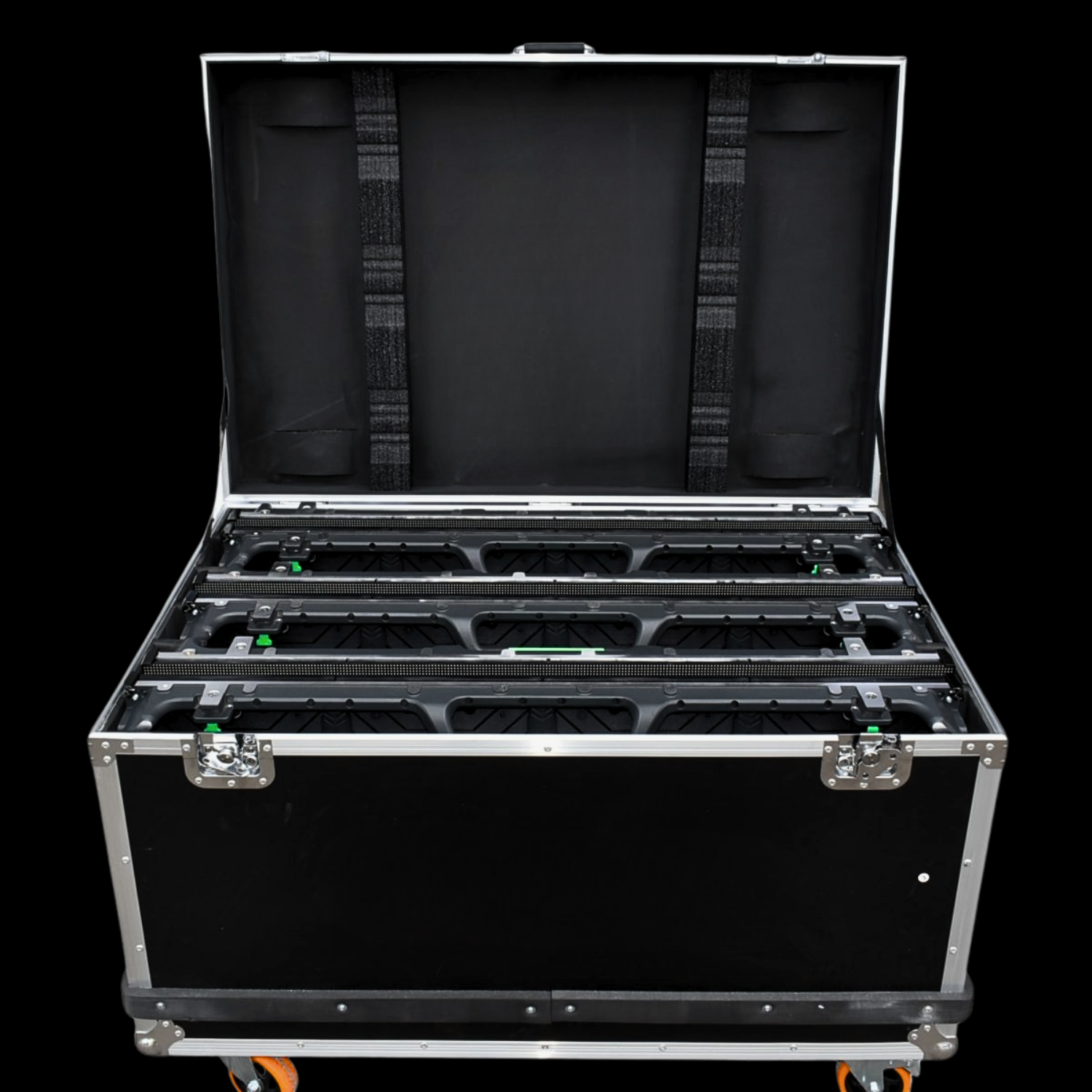 I flightcase consentono di mantenere i moduli LED organizzati, protetti e pronti all’uso, riducendo significativamente i tempi di preparazione dello schermo.
